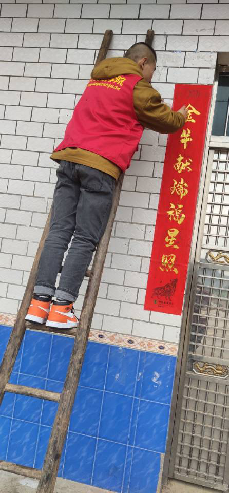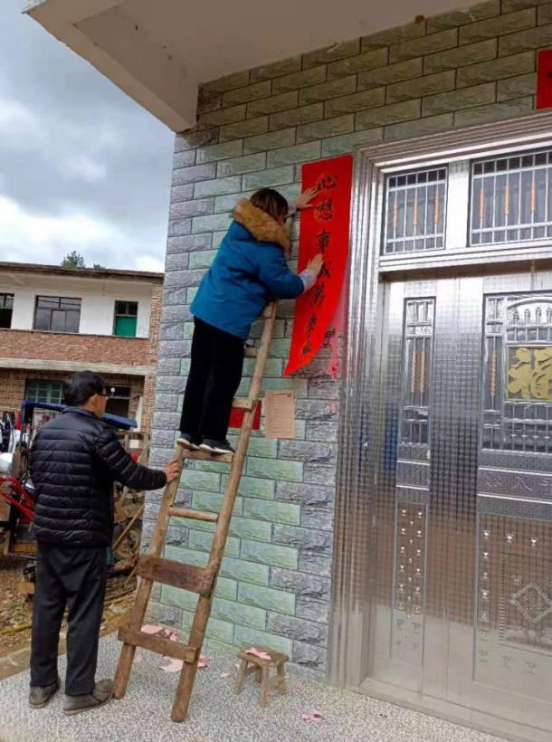 ▲帮助粘贴春联