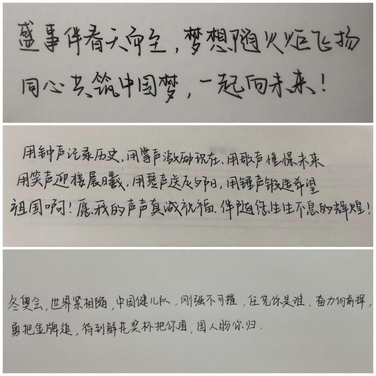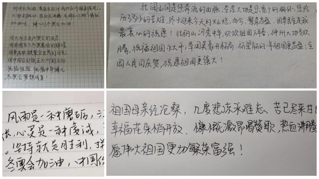 通过观看习近平总书记近年来发表的新年贺词以及冬奥会等视频,大家写下了自己的由衷之言。在春节期间,活动以居家录制和书写对祖国的美好愿景和对冬奥会参赛选手的期许和祝福为主要形式。