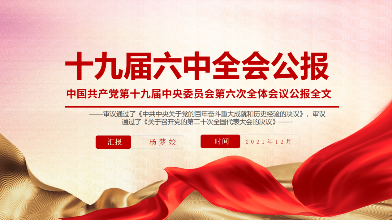 活动开始,杨梦姣同学从“党的十九届六中全会”的背景及意义进行阐述,并带领大家学习大会两份重要文件《中共中央关于党的百年奋斗重大成就和历史经验的决议》与《关于召开党的第二十次全国代表大会的决议》。主持人着重围绕公报中“三个需要”“四个历史时期”“十三个重要成就”“两个确立”“五大意义”“十个坚持”“一个根本问题”“四个必须”“一个号召”引导大家认识历史规律、增强历史自觉、掌握历史主动,深刻领会党的百年奋斗经验、重要成就、历史意义和下一个百年征程的指导思想、奋斗目标。