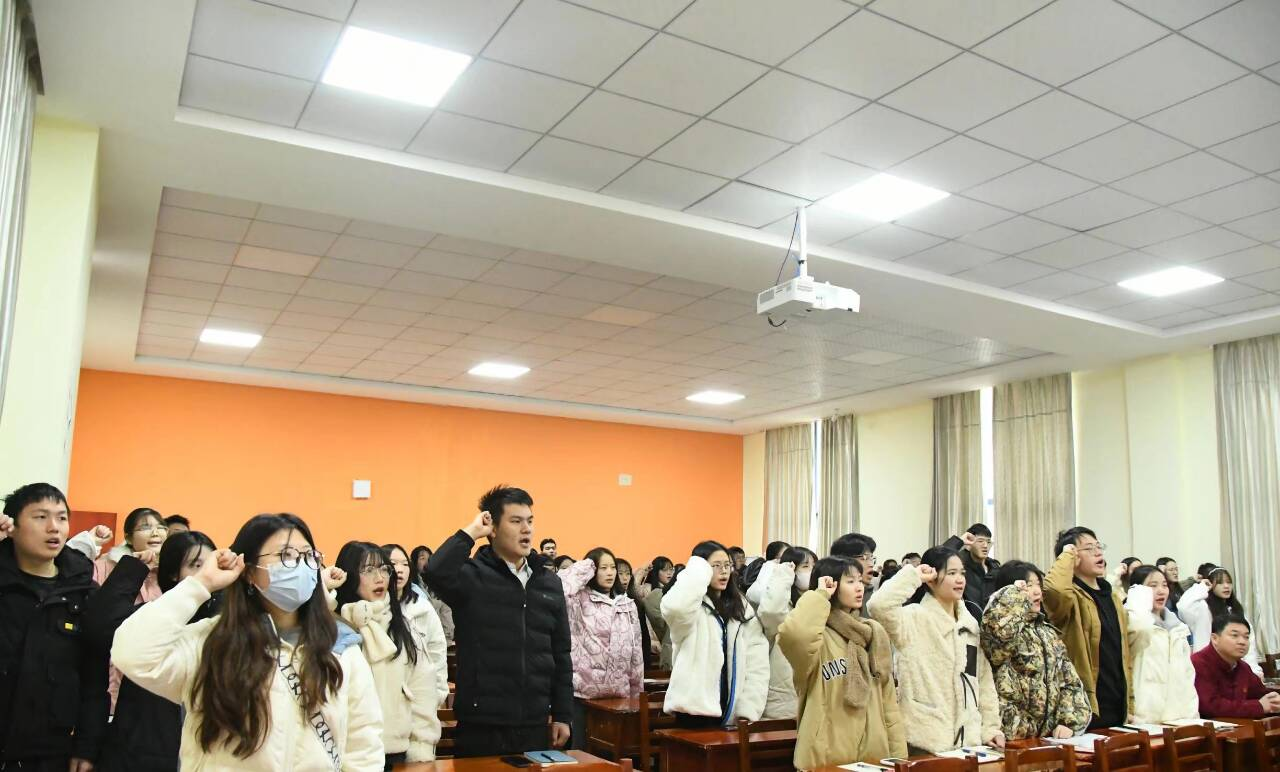 (通讯员 周自立)为确保入党积极分子培养教育见实效,着力选优育强党员后备队伍,为组织注入不竭源头活水,2021年12月29日中午12:30,经济贸易学院学工党支部在第二教学楼101教室(经济贸易学院分党校)举行第二期“青春向党”入党积极分子先锋营开营仪式。参加此次开营仪式的有经济贸易学院党总支书记谢虎军老师、学工党支部书记方红梅老师和学生党员代表谢雨以及“青春向党”入党积极分子先锋营74名入党积极分子。