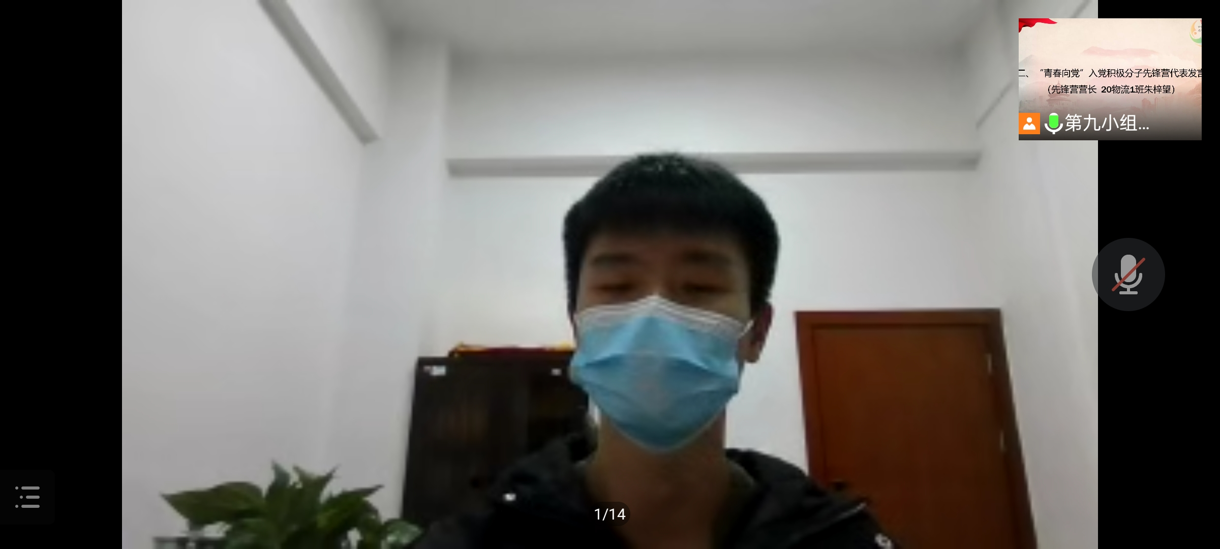 活动第二项是第二期“青春向党”入党积极分子先锋营营长朱梓望同学发言。他谈到自己成为入党积极分子以来,通过党史理论知识学习,对党有了更系统更深刻的认识。他表示成为一名中国共产党党员是自己一直以来的梦想和追求。他认为入党并不单单是获得一项荣誉,更是一种觉悟,一种责任,一种信仰。同时,他呼吁全体入党积极分子在学习上和生活中要为同学服务,为学院服务,带头遵守校纪校规,在同学中起到表率作用。