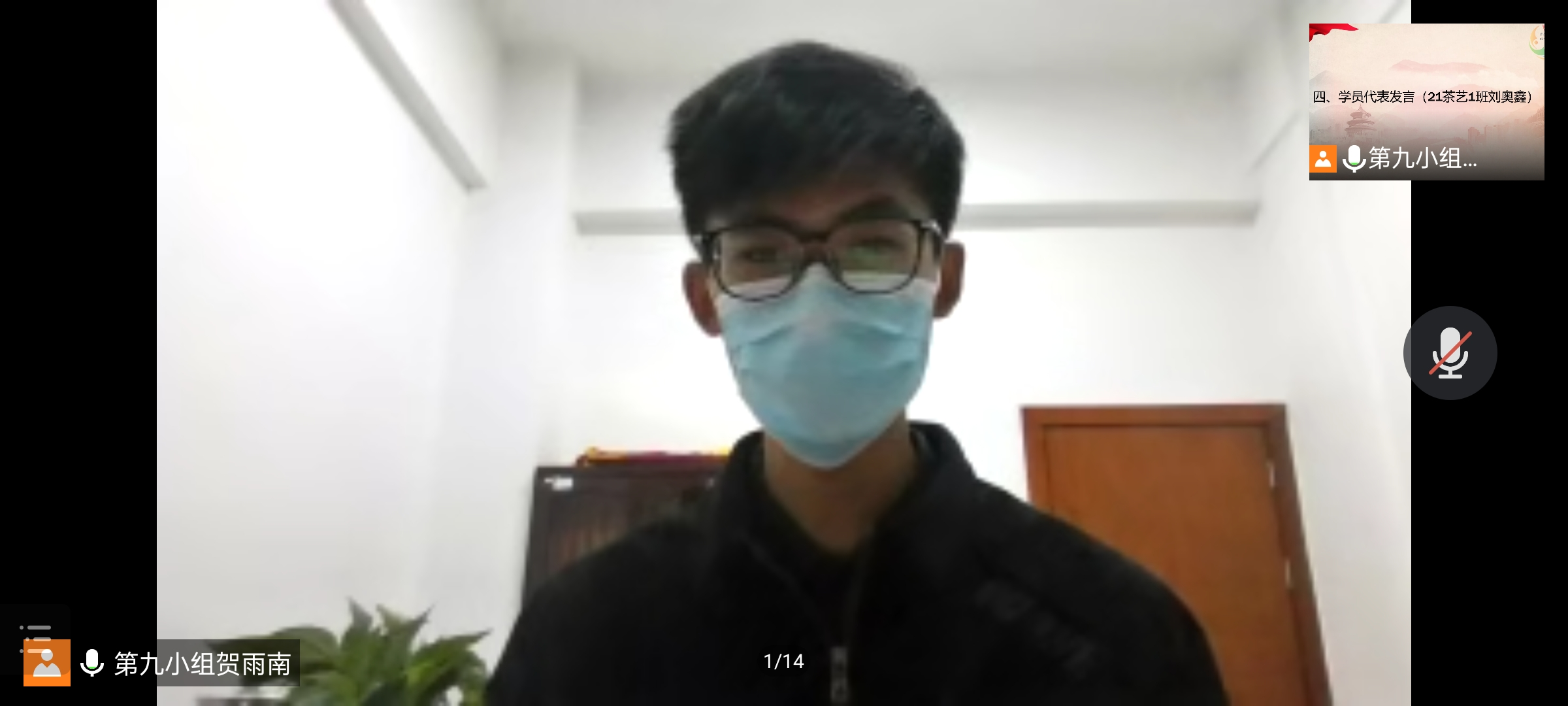 随后,由21级茶艺1班刘奥鑫同学代表入党积极分子发言。他代表所有参加此次党校培训的学员作出郑重承诺:一是在思想上要不断提高政治觉悟,加强党史理论学习;二是在学习上要努力学习文化知识,争做学习模范;三是积极参加志愿服务活动,丰富阅历,增长才干;四是在生活中要与同学互帮互助,团结友爱,为建设一个优秀的集体而努力。