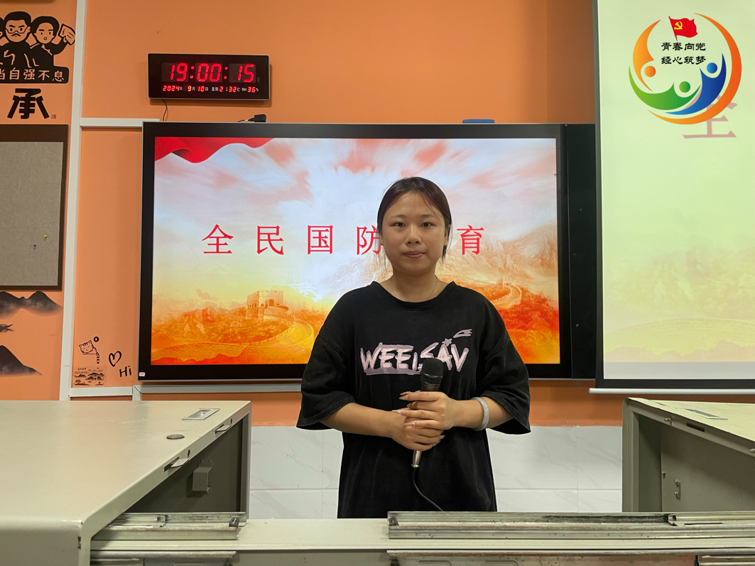 (通讯员 周贞)国无防不立,民无防不安。为强化广大青年国防意识、提升国防素养,凝聚强国力量,2024年9月10日晚7时,经济贸易学院学工党支部在博思楼101教室组织开展“加强国防教育,增强国防观念”主题党日活动。此次活动由22级食用菌生产与加工技术刘心瑜主持,经济贸易学院学工党支部全体党员、入党积极分子参与此次活动。