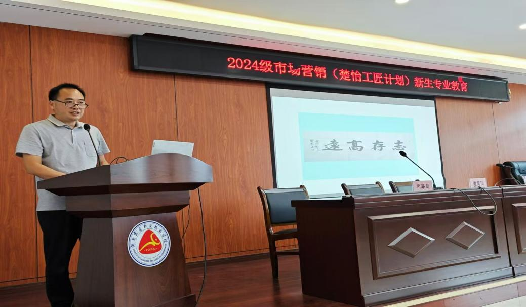 市场营销专业教研室主任禹?;劾鲜睦?024级市场营销本科新生志存高远奔目标,脚踏实地谋未来。他以生动的语言结合丰富的案例介绍了市场营销专业的核心课程、培养目标以及就业前景。市场营销是一门充满活力与挑战的学科,不仅需要扎实的理论基础,更需要敏锐的市场洞察力和创新思维。