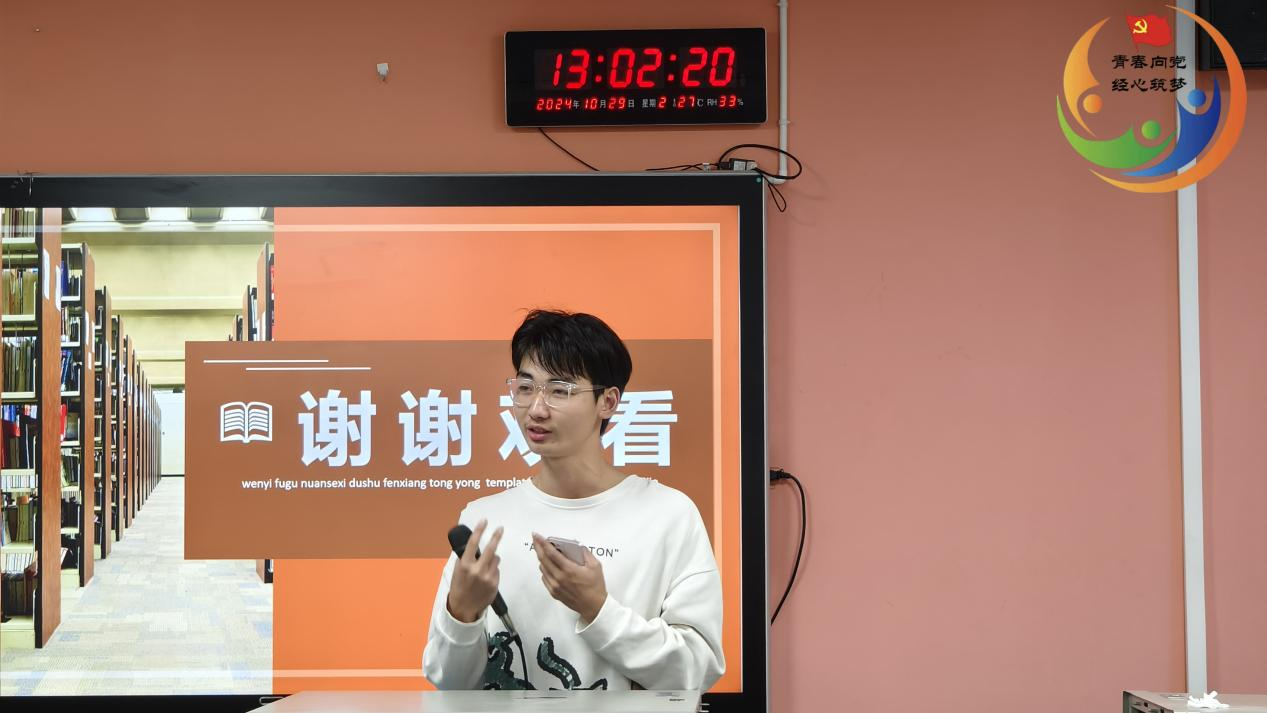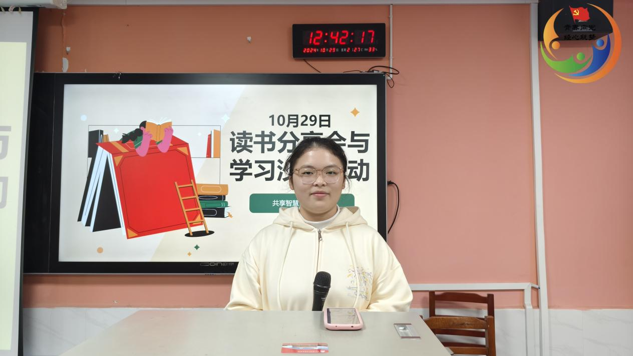 (通讯员 晏艳阳)读书为启智,启智为笃行,笃行即为践行远大理想。2024年10月29日中午12:40,经济贸易学院学工党支部在博思楼210(经济贸易学院分党校)开展“共享智慧,启迪人生”读书分享会活动。本次读书分享会由23级茶艺与茶文化2班陈湘玲主持,经济贸易学院先锋营全体成员、入党积极分子参加此次活动。