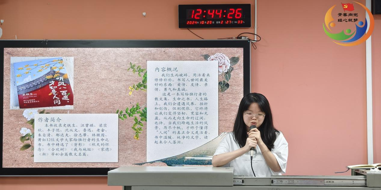 23级市场营销4班黄瑶分享了书籍——《听风八百遍,才知是人间》。这是本写给独行者的生命之书,收录了史铁生、汪曾祺、梁实秋、丰子恺、沈从文、鲁迅、老舍、朱自清、郁达夫、徐志摩、林徽因、萧红12位文学大家。黄瑶同学分享道:“人生路上,我们会遭遇风暴、挫折和创伤,但别慌张,它终将让我们变得坚韧、宽容和充盈,从而走向生命的辽阔。也许,当我们跨越生活的风景,历尽千帆,才终于懂得“人间”的真正含义是活着。书中温暖、纯净的文字,读起来令人落泪。”