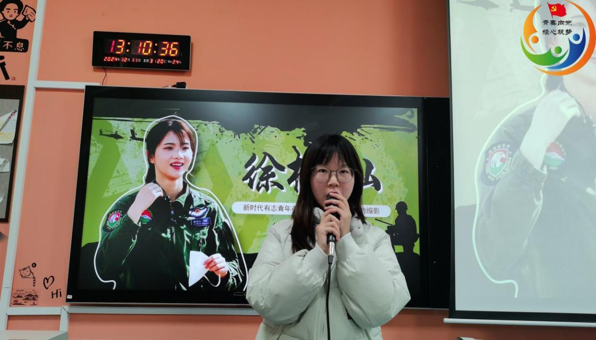 最后,23级市场营销(楚怡工匠)1班的周贞同学代表“最具感染力组”,以一位优秀女性军人“徐枫灿”的成长历程为“抓手”,以生动的语言和感人的细节,将徐枫灿的坚韧与勇敢刻画得入木三分。从童年梦想,到军校求学,再到成为首位初放单飞的女飞行员,徐枫灿的每一步都充满挑战。她的故事不仅激励着在场观众,更让大家深刻感受到了新时代女性的力量与魅力。