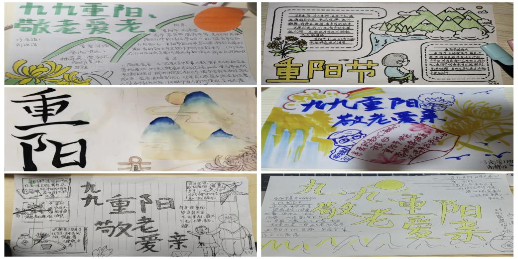 在这个特殊的节日里,同学们用自己的行动诠释了对老人的关爱。首先进行的是手抄报制作环节。同学们用心收集关于重阳节的历史典故、传统习俗、敬老故事等资料,用手中的画笔精心绘制出一幅幅主题鲜明、内容丰富的手抄报。这些手抄报不仅展现了重阳节的深厚文化内涵,更表达了对老人们的深深敬意和祝福。