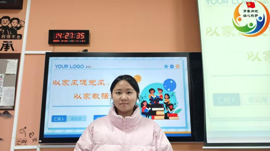 (通讯员 郑婷)为深入贯彻党的教育方针,强化入党积极分子的党性修养。2025年2月25日下午14:30时,经济贸易学院学工党支部在博思楼101(经济贸易学院分党校)组织开展“以家风促党风,以家教强党性”主题党日活动?;疃稍け傅吃贝骶炅胀局鞒?,经济贸易学院学工党支部全体党员及入党积极分子参加此次活动。
