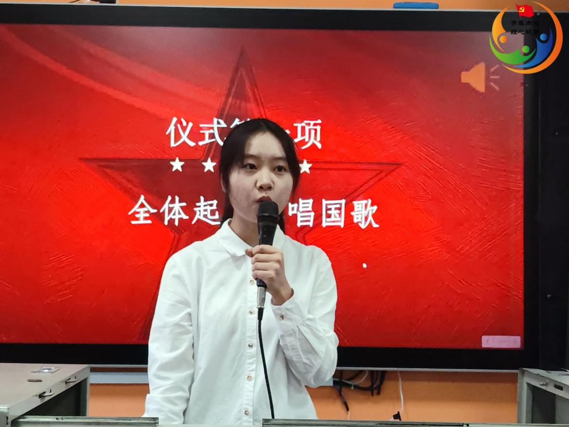 仪式开始,全体肃立,奏唱《中华人民共和国国歌》。随后,由经济贸易学院学工党支部书记方红梅老师宣读第四期“青春向党”先锋营名单。