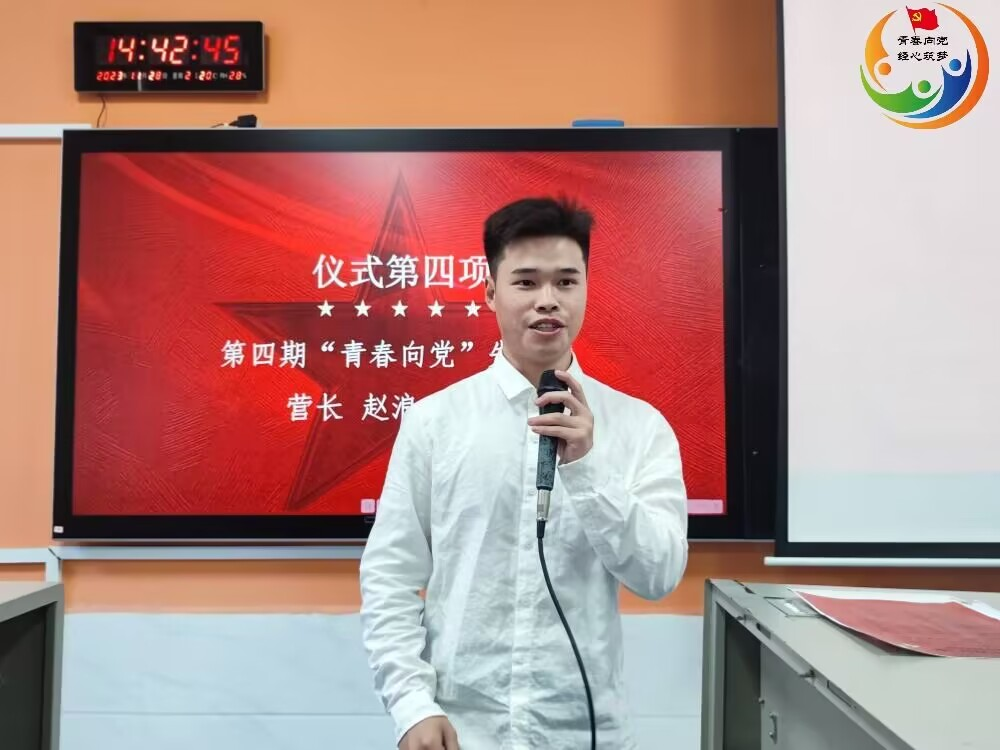 22级连锁经营与管理的1班的赵浪欣作为第四期“青春向党”入党积极分子先锋营营长发言:“作为第四期先锋营营员,我们对自己的未来充满着美好的憧憬,同时也肩负着历史的使命。在学习历届先锋营学长学姐的优秀事迹时,我们需要借鉴但我们更需要思考!他们所开创的我们秉承,他们所忽略的我们寻找,但最重要的就是,我们要学会反思、发现问题并解决问题。”