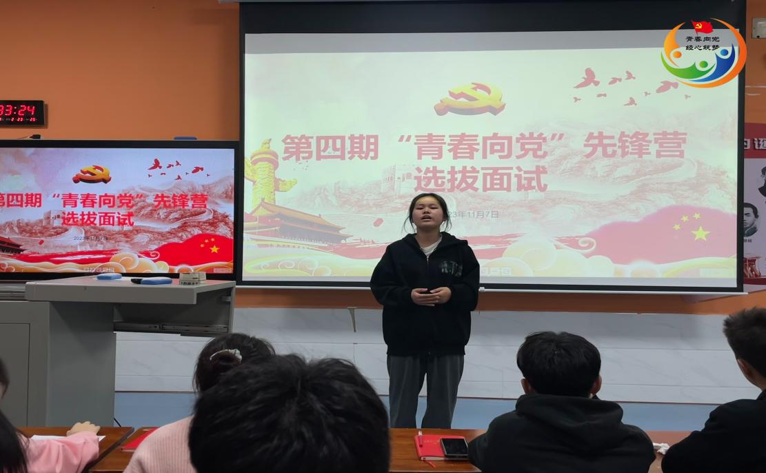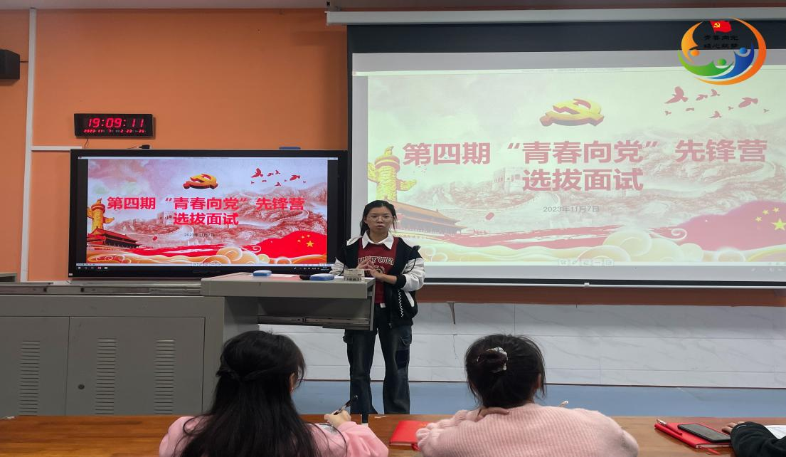 (通讯员 罗梦喜)2023年11月7日晚7时,经济贸易学院学工党支部在博思楼101(经济贸易学院分党校)组织开展第四期“青春向党”入党积极分子先锋营营员面试选拔活动。经济贸易学院学工党支部全体党员、部分入党积极分子参加此次面试活动。