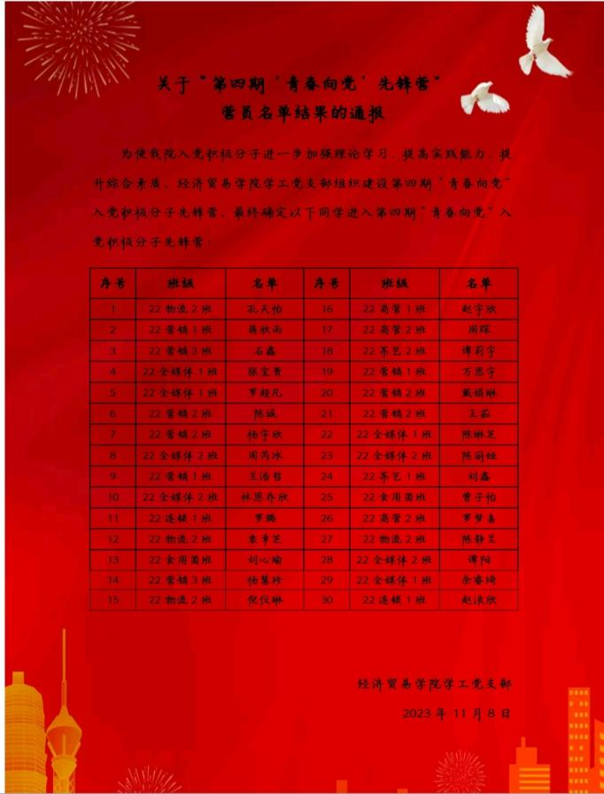 ▲第四期“青春向党”入党积极分子先锋营营员入选名单