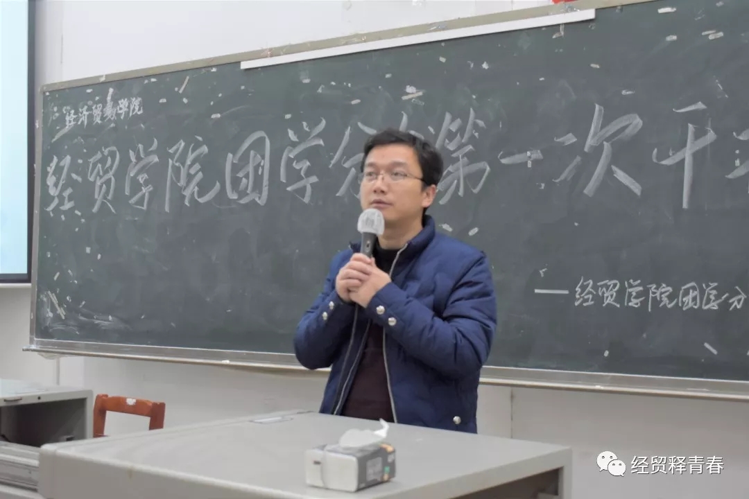 为提高我校学生干部的管理能力与综合素质,2018年12月13日19:00,我院第一期经贸团学分会学生干部培训在二教101教室开展。此次培训由我院党总支书记皮卫担任主讲人,组织部干事周炎担任主持人。