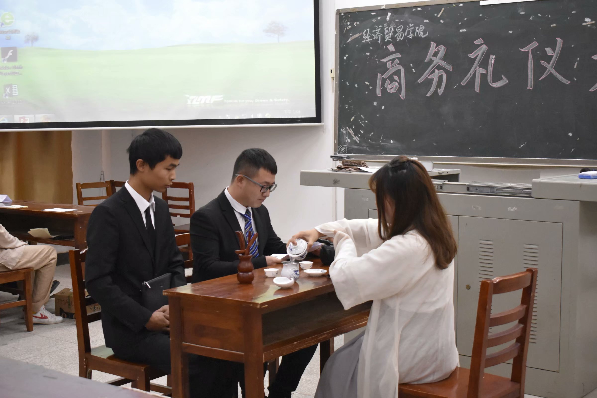 为提高同学们的个人素质和修养,打造一个展示自己风采的舞台。2018年12月19日中午12:15,由经贸学院助学服务部主办的第二届商务礼仪风采大赛决赛于二教101举行,评委出席本次活动为主席团、各部门部长。经过初赛的重重选拔,最终14支队伍进入决赛。