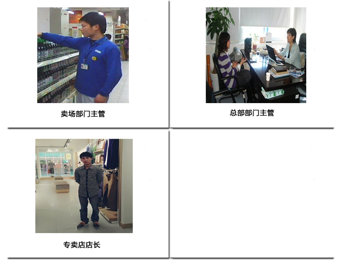 16连锁万韬:时代城店 生鲜区 果蔬部主管,18连锁李新惠:人人乐阳光100店 生鲜区 果蔬部主管、 18连锁梁换人人乐阳光100店食品区的部门主管,18连锁罗湘瑜: 长沙人人乐分公司采购专员,18连锁陈天航: 长沙人人乐分公司招商专员
