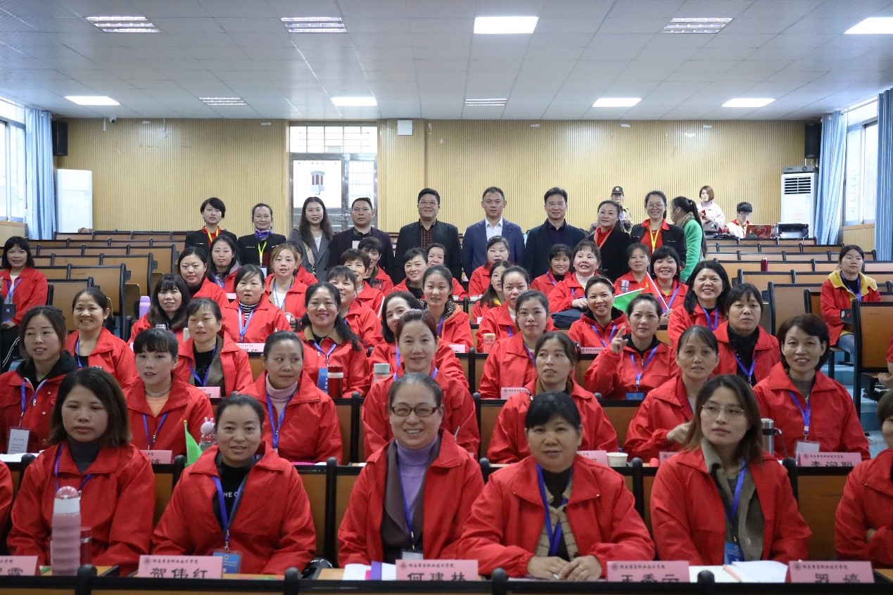 为了落实湖南省总工会“一户一产业工人”培养工程,发挥学校在“乡村振兴”和“精准扶贫”中的作用,提升育婴人员推拿及婴儿护理技能,提高从业人员收入,经过一个月的筹备,2019年10月26日育婴师技能提升培训班开班仪式在湖南商务职业技术学院隆重举行。湖南省直工会帮扶中心副主任李才良、专干李婷,学校副校长张朴、继续教育学院院长姜华斌、副院长陈斌、培训负责老师刘强,就业合作企业长沙湘嫂家政服务公司周春华经理出席了开班仪式,开班仪式由继续教育学院院长姜华斌主持。