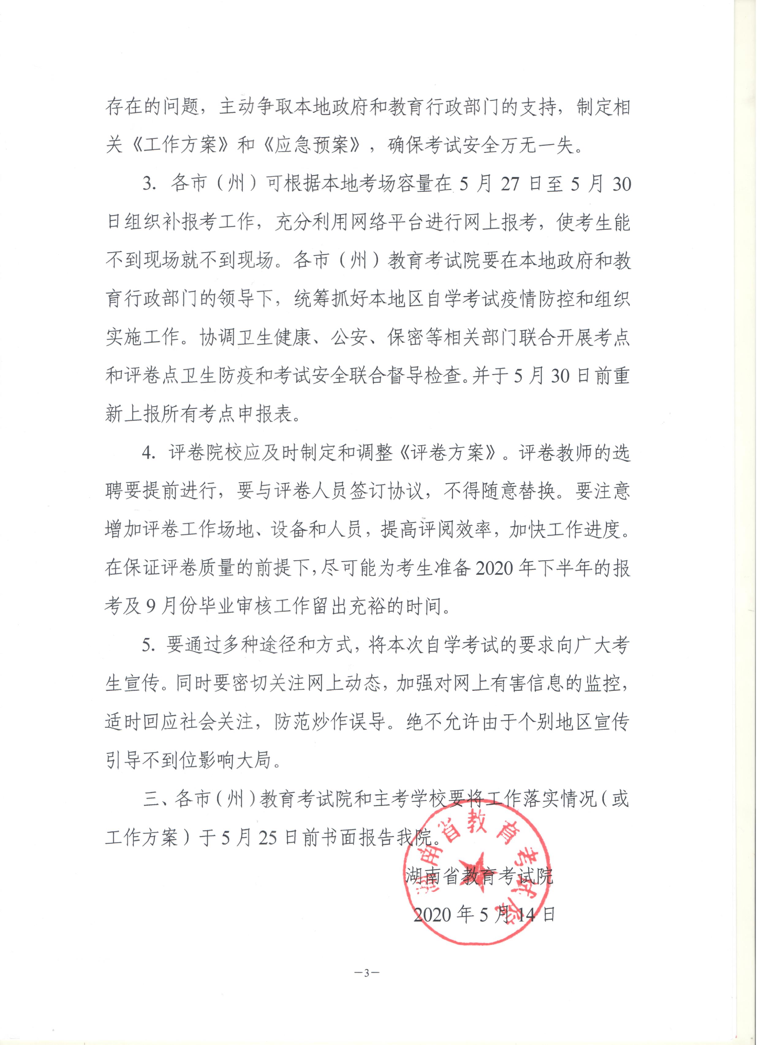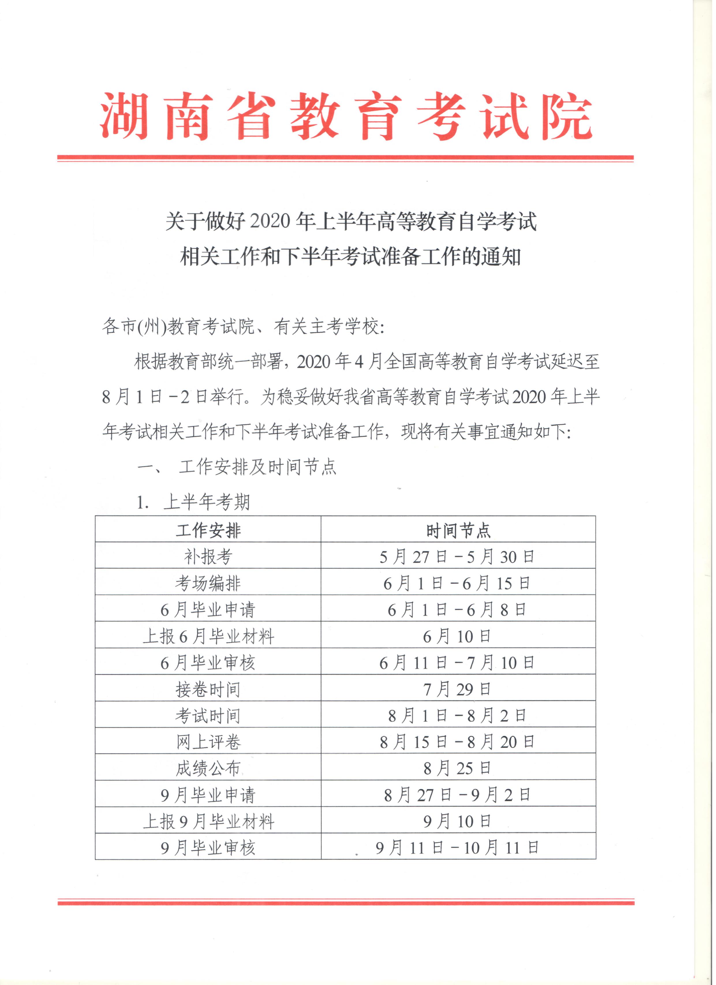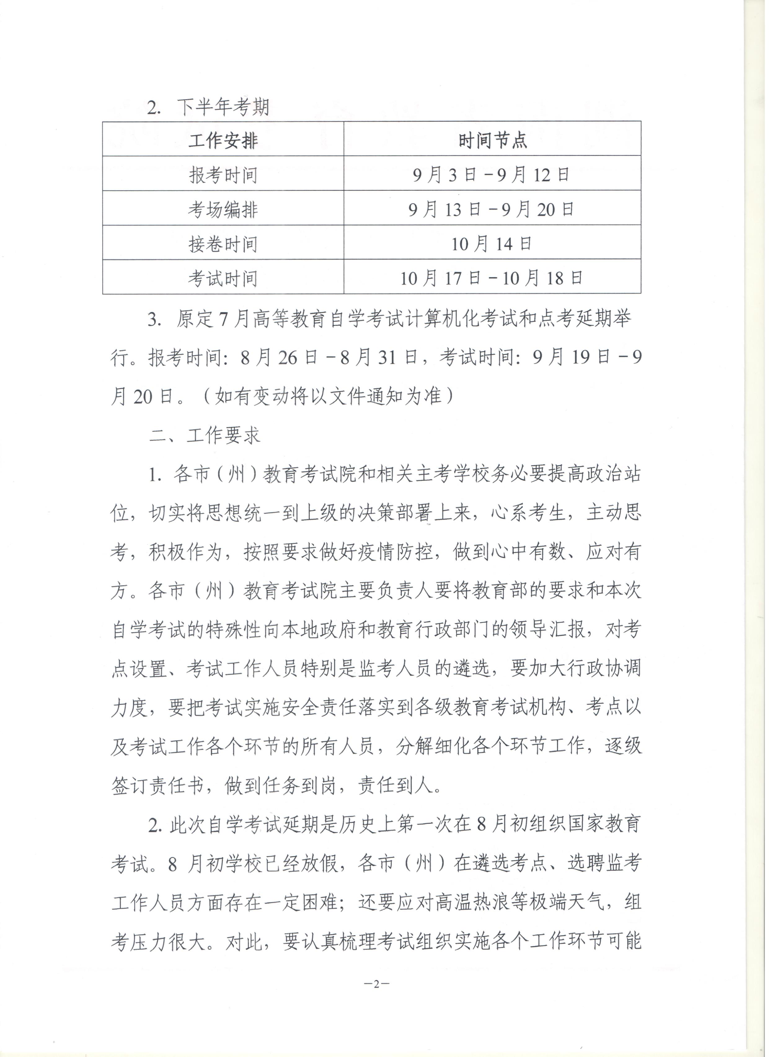 关于做好2020年上半年高等教育自学考试相关工作和下半年考试准备工作的通知