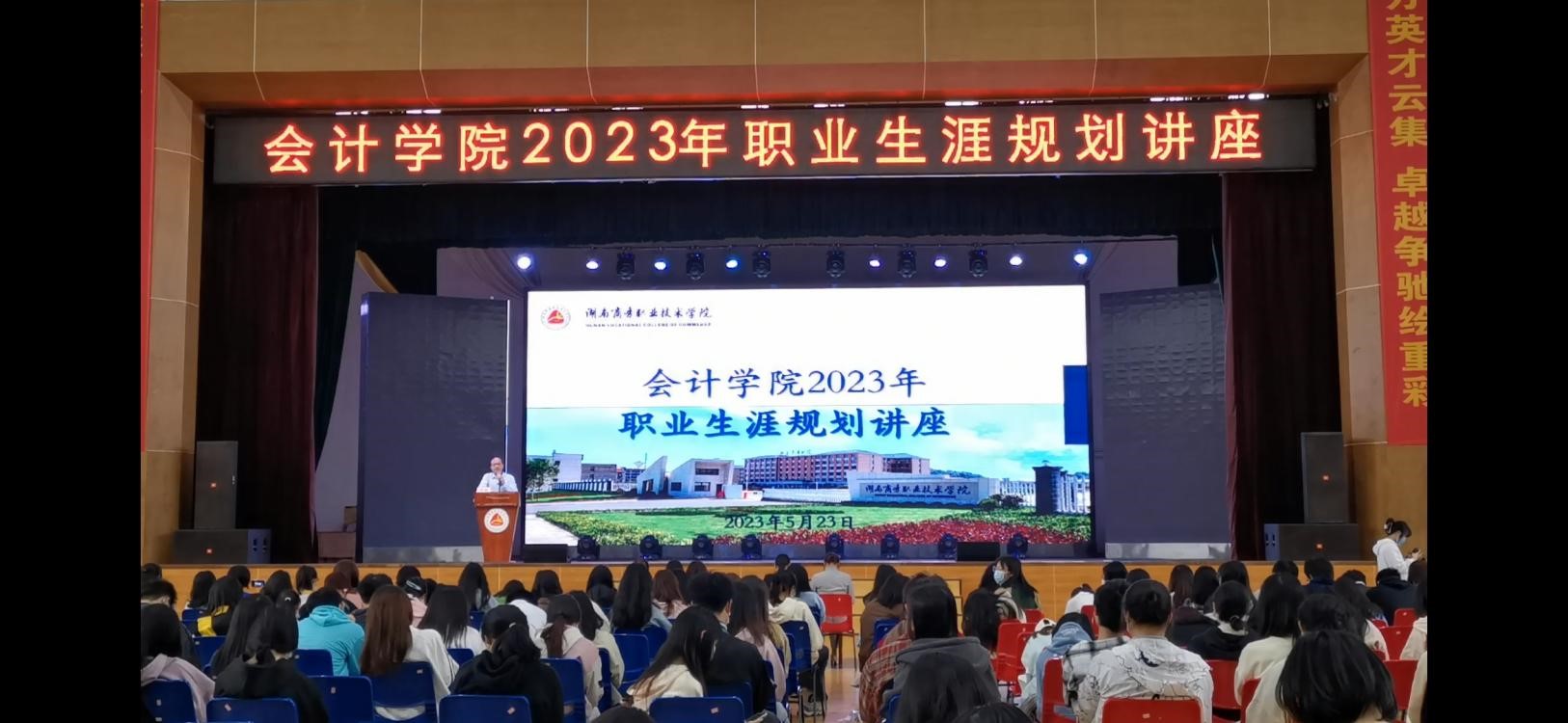 为引导学生做好职业生涯规划,明确学习目标,同时激发同学们对专业的学习兴趣,强化专业知识素养,5月23日,会计学院在体育馆举行“2023年职业生涯规划讲座”。邀请了统计与会计专业2019届自考专升本优秀毕业生刘宇娟返校与在校学子分享个人发展经历,并与同学们进行了深入交流。此次讲座由会计学院柳志院长主持,会计学院自考干事陈蓉老师、湖南农业大学自考商务学院助学站点负责人付兰老师、朱琳老师及学院22级全体学生参加。