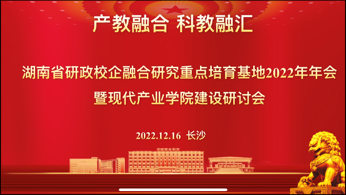 12月16日上午,湖南省“十四五”教育科学研政校企融合研究重点培育基地2022年年会暨现代产业学院建设研讨会在长举行,近三百专家学者相聚线上,聚焦“产教融合 科教融汇”主题,着力加快推进职业教育现代化发展,助力服务国家战略和区域经济社会发展。