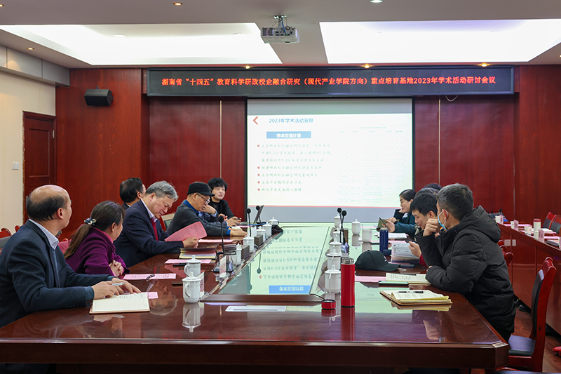 2023年2月12日下午,湖南省“十四五”教育科学研政校企融合研究重点培育基地(现代产业学院方向)2023年学术活动研讨会在湖南商务职业技术学院举行。