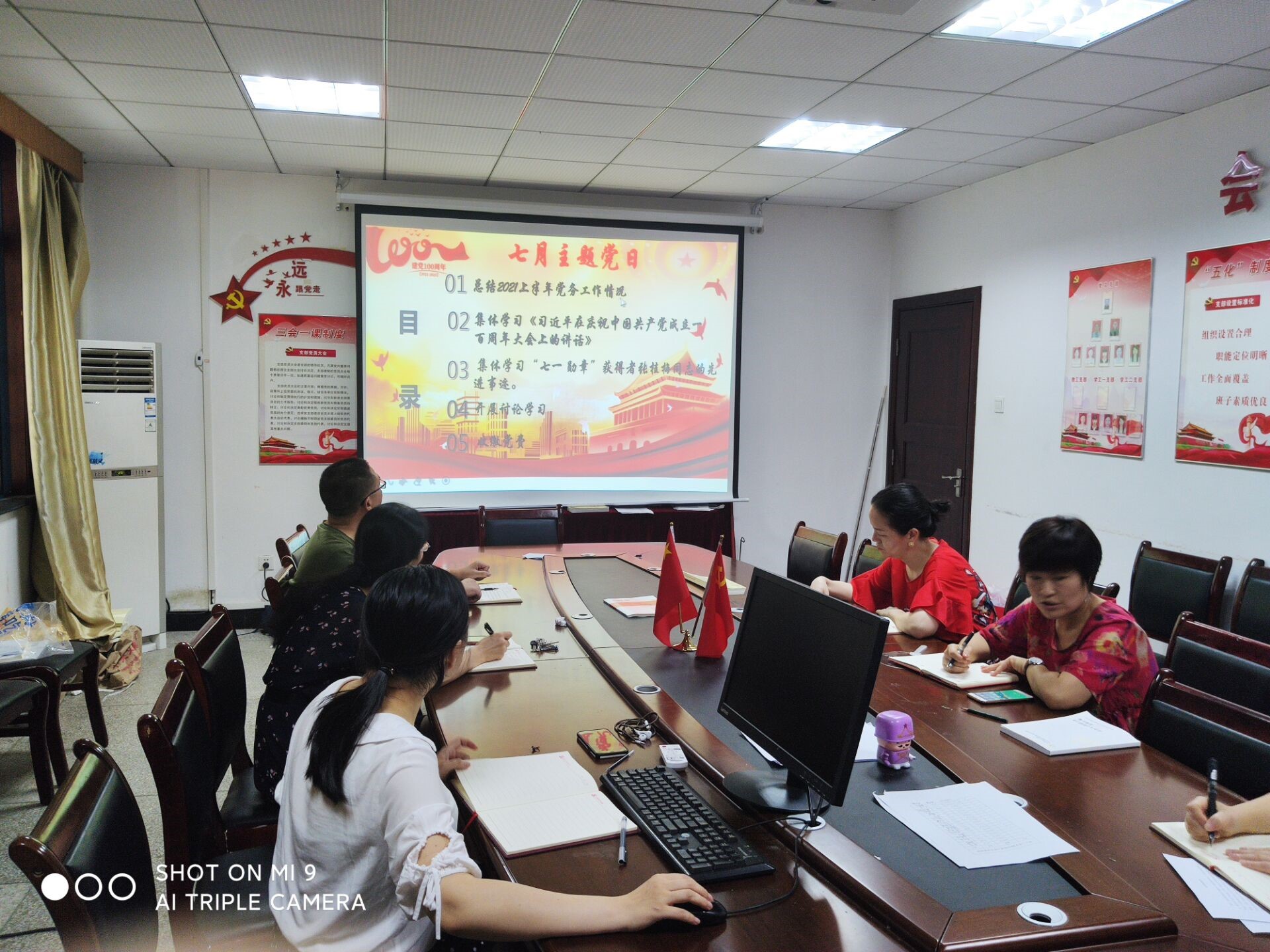 首先,由支部书记谭灿娇同志总结了上半年的党务工作情况并布置了七月党费收缴任务。同时,谭灿娇同志表示:全体党员同志要提高党员自身素质,充分发挥党员的先锋模范带头作用,把党纪党纲、党的指导思想,尤其是习近平新时代中国特色社会主义思想落实到日常工作中、生活中,努力争做新时代最好的党员。