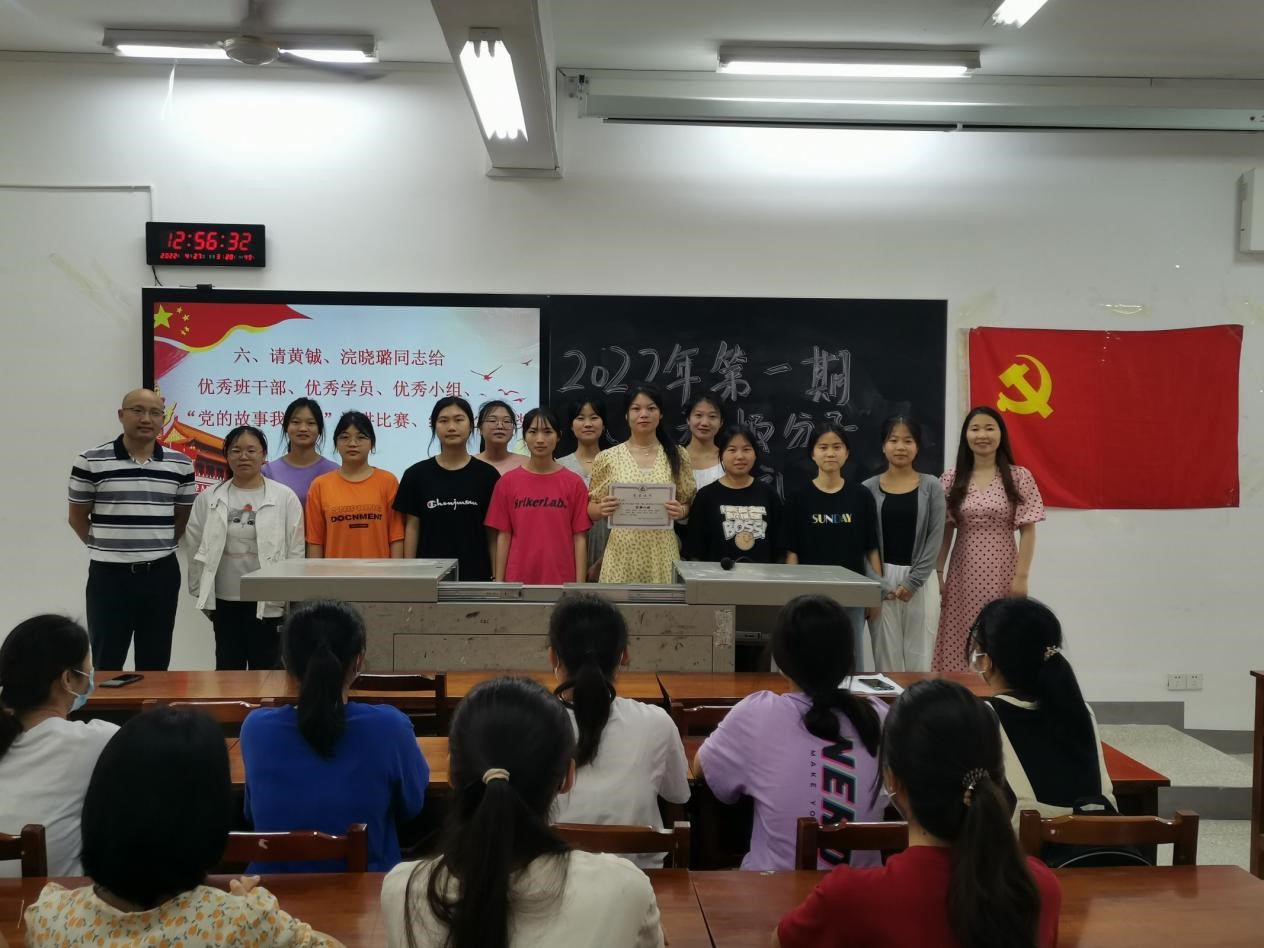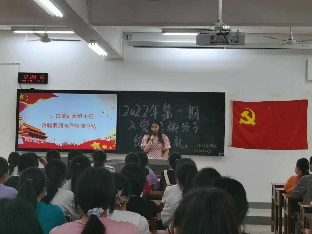 4月27日12:30,会计学院举行2022年第一期入党积极分子培训班结业典礼。党总支书记黄铖、培训班班主任浣晓璐同志以及顺利通过结业的学员参加此次结业典礼。20统会1班肖慧主持本次典礼。