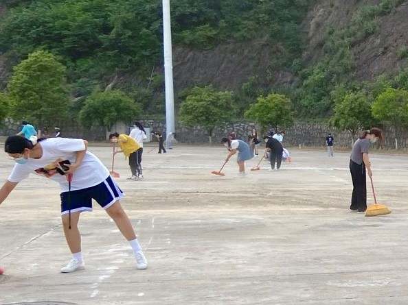 本次义务活动主要劳动范围为篮球场与产教融合楼之间的水泥地广场。活动中,曾大为老师对同学们进行明确分工,认真巡查同学们的清扫工作;同学们认真负责、相互合作,手持扫帚、撮箕等工具,对广场上的石块碎渣、尘土等垃圾进行了集中清扫和清倒。经过两个小时的团结协作和认真清扫,广场上的石块和尘土被清理得干干净净。