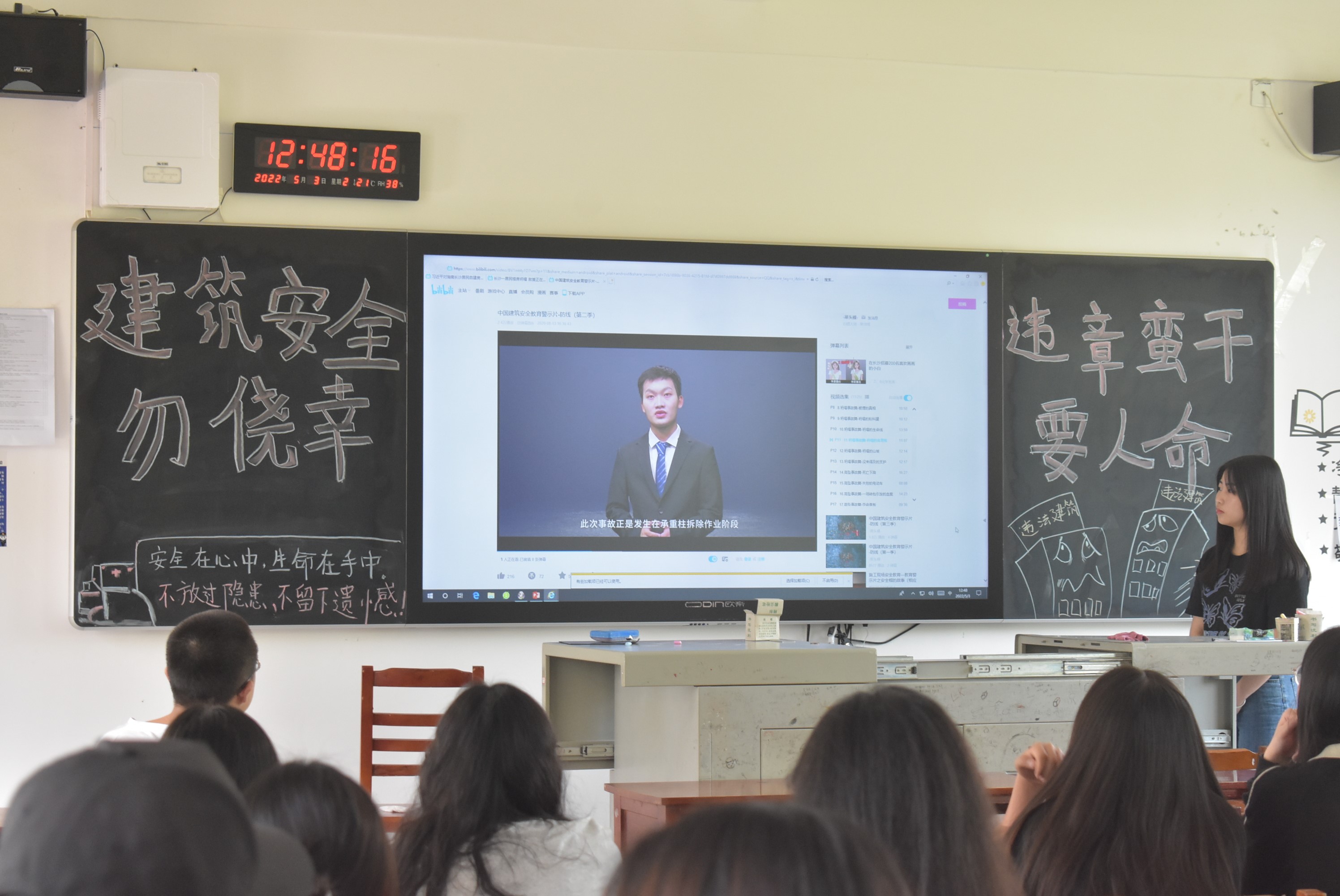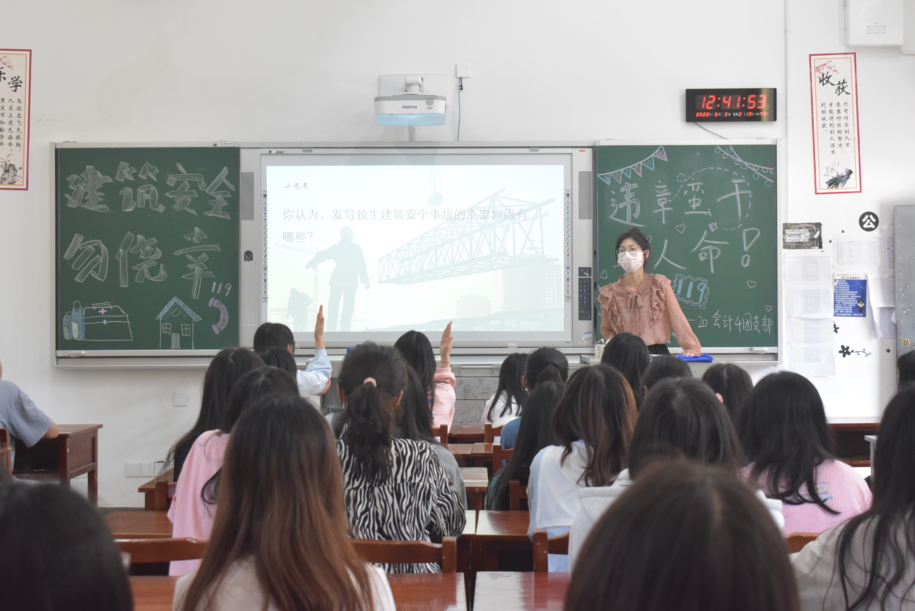为提高同学们的安全意识和风险防范意识,增强同学们的安全自救能力,会计学院于5月2日12:30—15:10开展“建筑安全勿侥幸,违章蛮干要人命”主题班会活动。大一、大二全体学生参与此次活动。