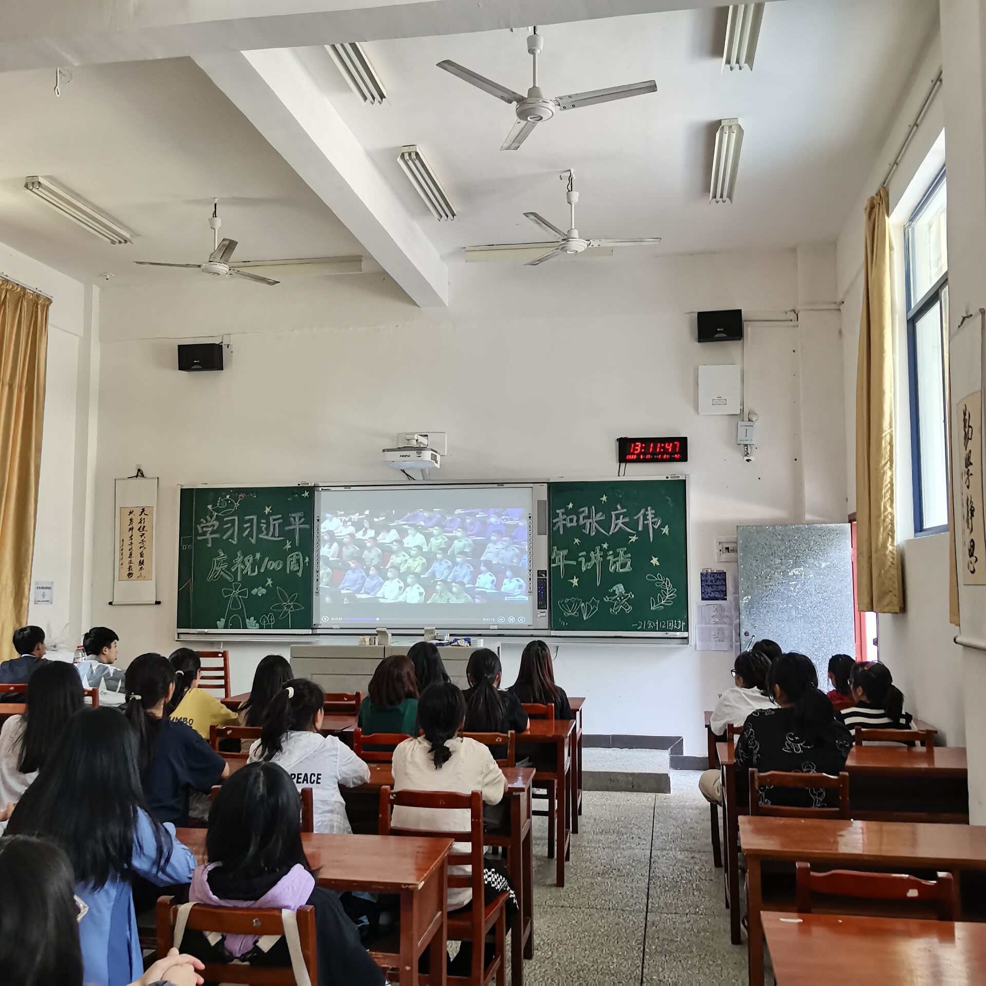 在班会开展过程中,主持人为同学们讲解习近平总书记和张庆伟在庆祝中国共产主义青年团成立100周年大会上的重要讲话,感慨万千的回顾了100年来共青团坚定不移听党话、跟党走的辉煌历程,充分肯定了共青团在党的领导下、团结带领一代代团员青年为实现中华民族伟大复兴中国梦所作出的重要贡献,并希望各位共青团青年高举旗帜、紧跟核心,不断增强引领力、组织力、服务力,团结引领广大团员青年不忘初心、牢记使命,踔厉奋发、锐意进取,在高质量发展和现代化建设的火热实践中绽放青春光彩。