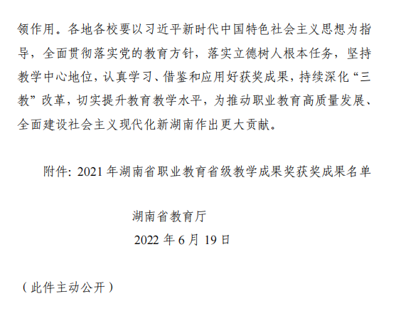 我院教师获2021 年湖南省职业教育 省级教学成果奖
