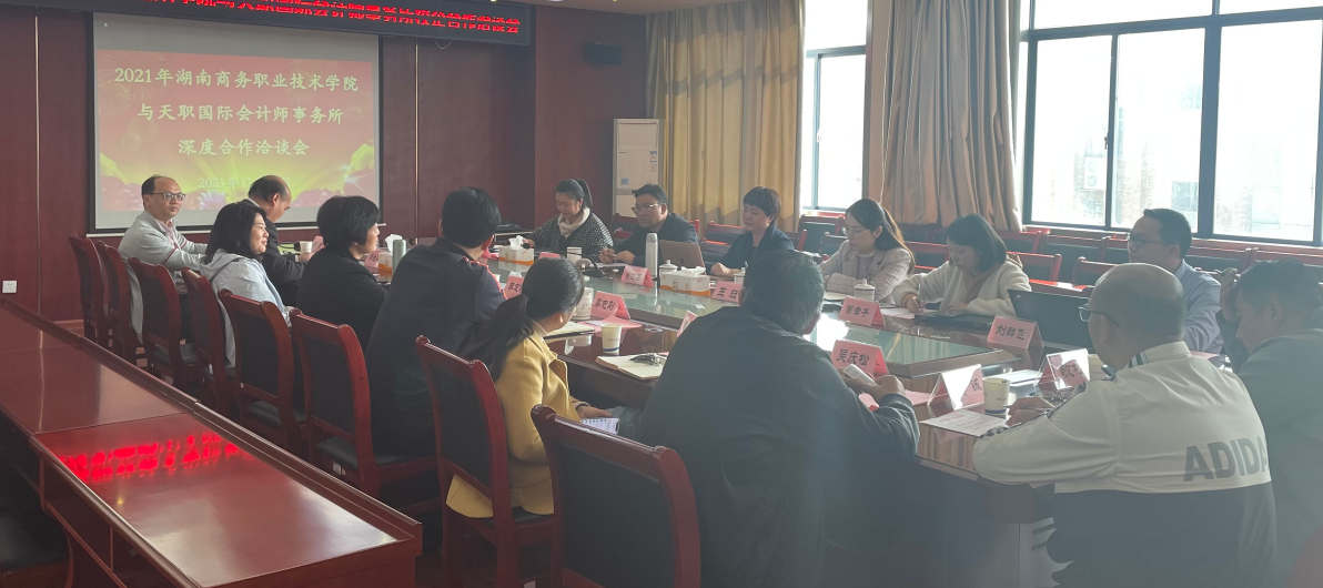 2021年11月13日上午,天职国际会计师事务所合伙人肖红英、业务拓展总监王珏、 高级经理魏瑞祺、曾幸子、李晶晶、 刘群飞到访我校商洽校企合作事宜,湖南商务职业技术学院院长李定珍、党委副书记廖志刚、副院长易兰华、副院长禹明华、创新创业学院院长吴庆松、合作交流处处长唐柳荷、会计学院院长柳志、会计学院党总支书记黄铖等代表出席仪式并座谈交流。