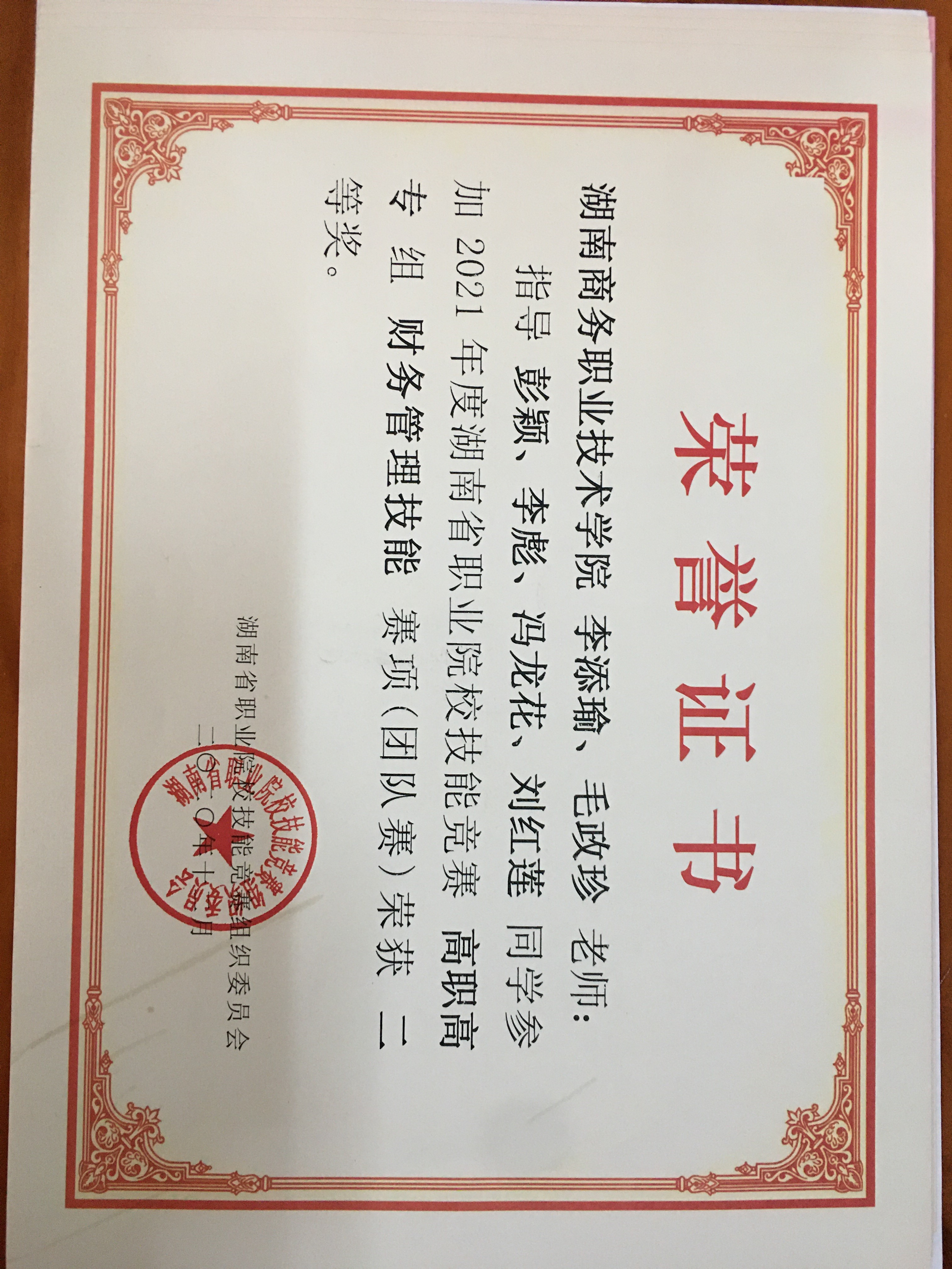 2020年12月,在2021年湖南省职业院校技能竞赛(财务管理)赛项中,我院共派出两队参赛,均荣获了二等奖。分别为李添瑜、毛政珍老师指导的由会计学院18财务管理1班冯龙花、18会计1班彭颖、19会计4班李彪、19会计4班刘红莲组成的参赛团队;由张镱凡、陈灿老师指导的由会计学院19会计8班任天、19会计5班董梦瑶、20会计3班熊雅琴、20会计3班谭广园组成的参赛团队。