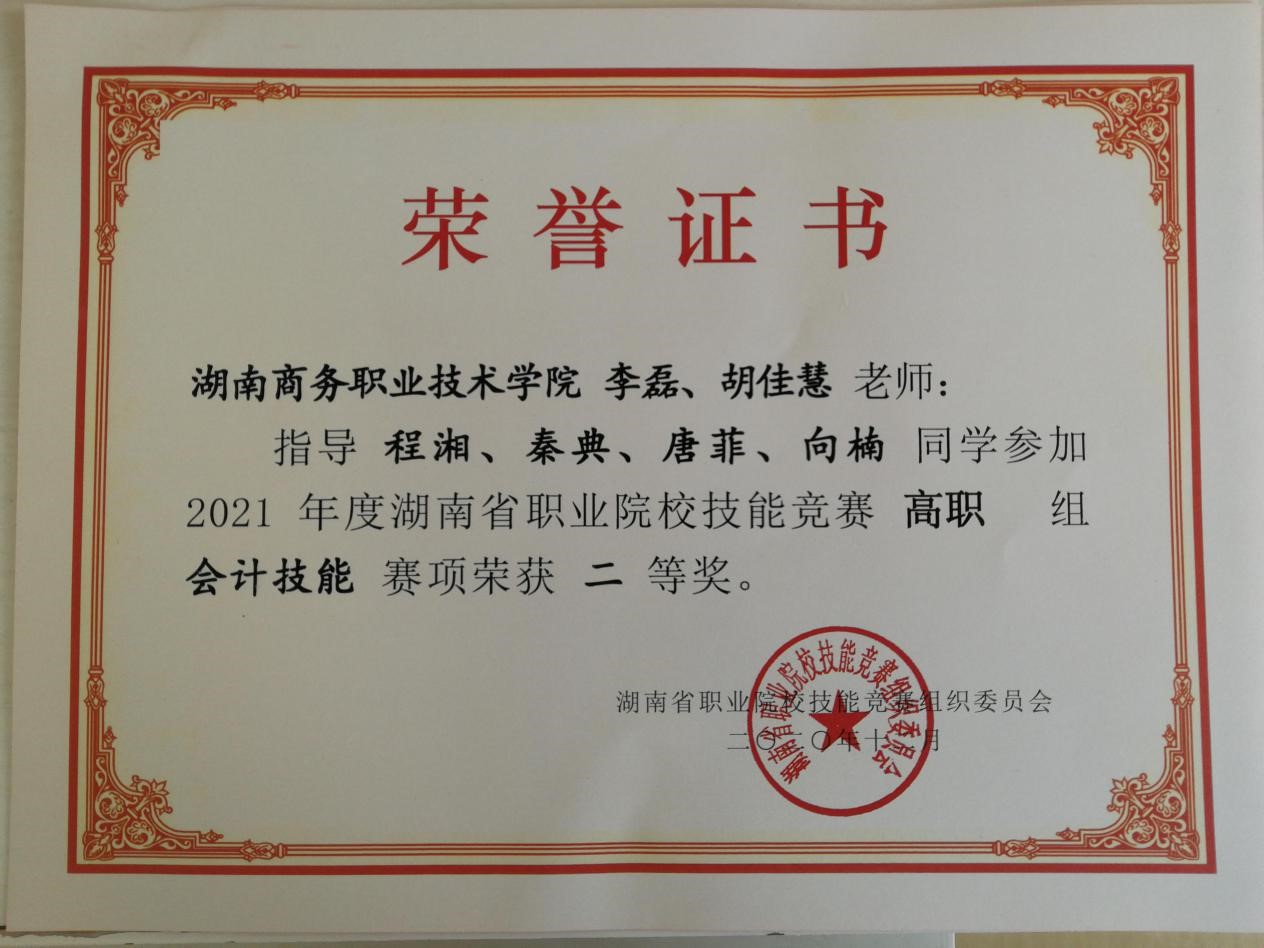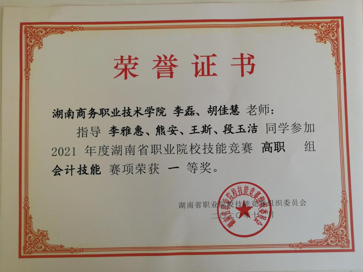 会计学院代表队荣获2021年湖南省职业院?;峒萍寄芫喝笕诰?/div>