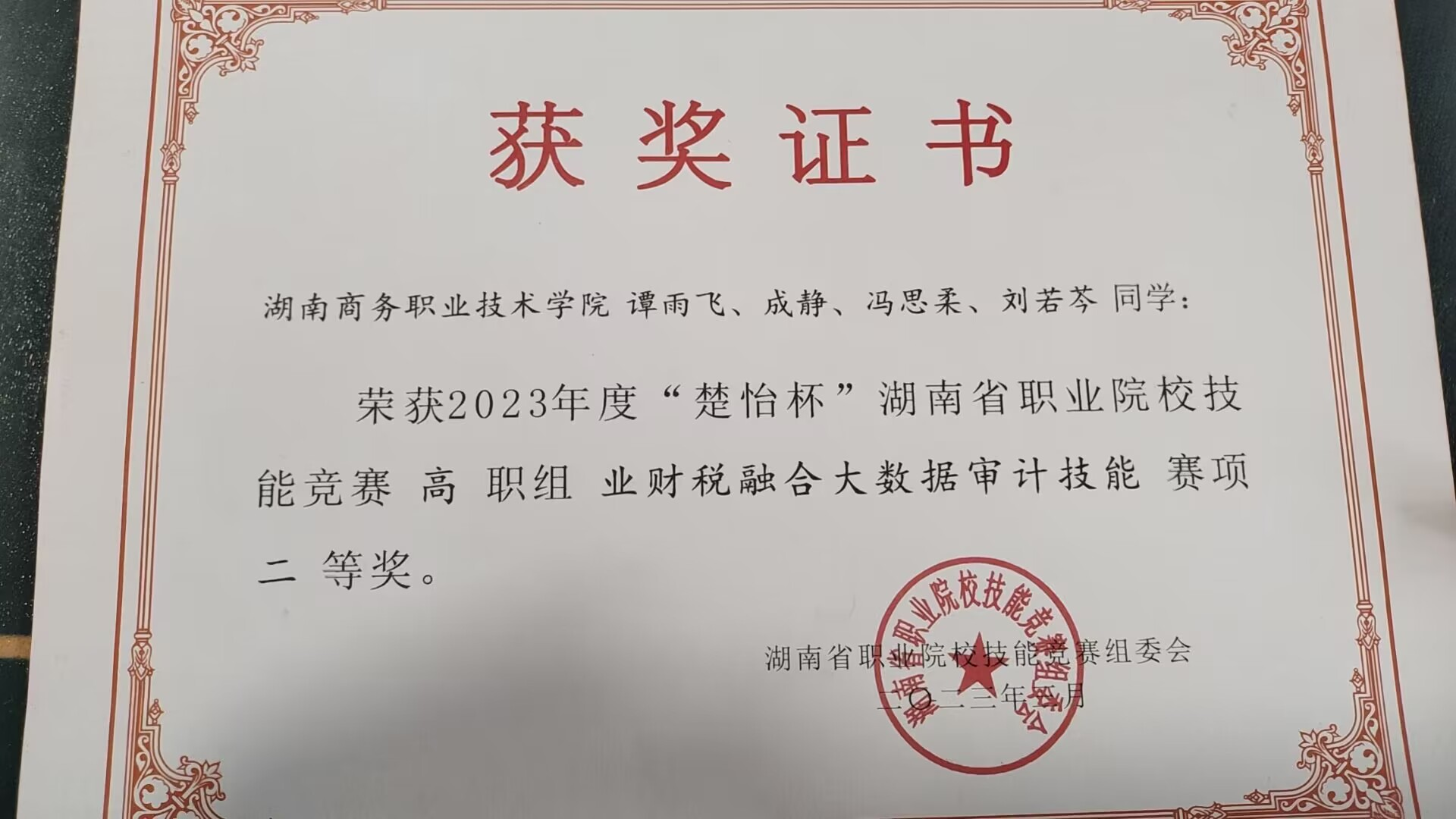 会计学院在湖南省“楚怡杯”职业院校技能竞赛业财税融合大数据审计技能赛项中荣获二等奖和三等奖