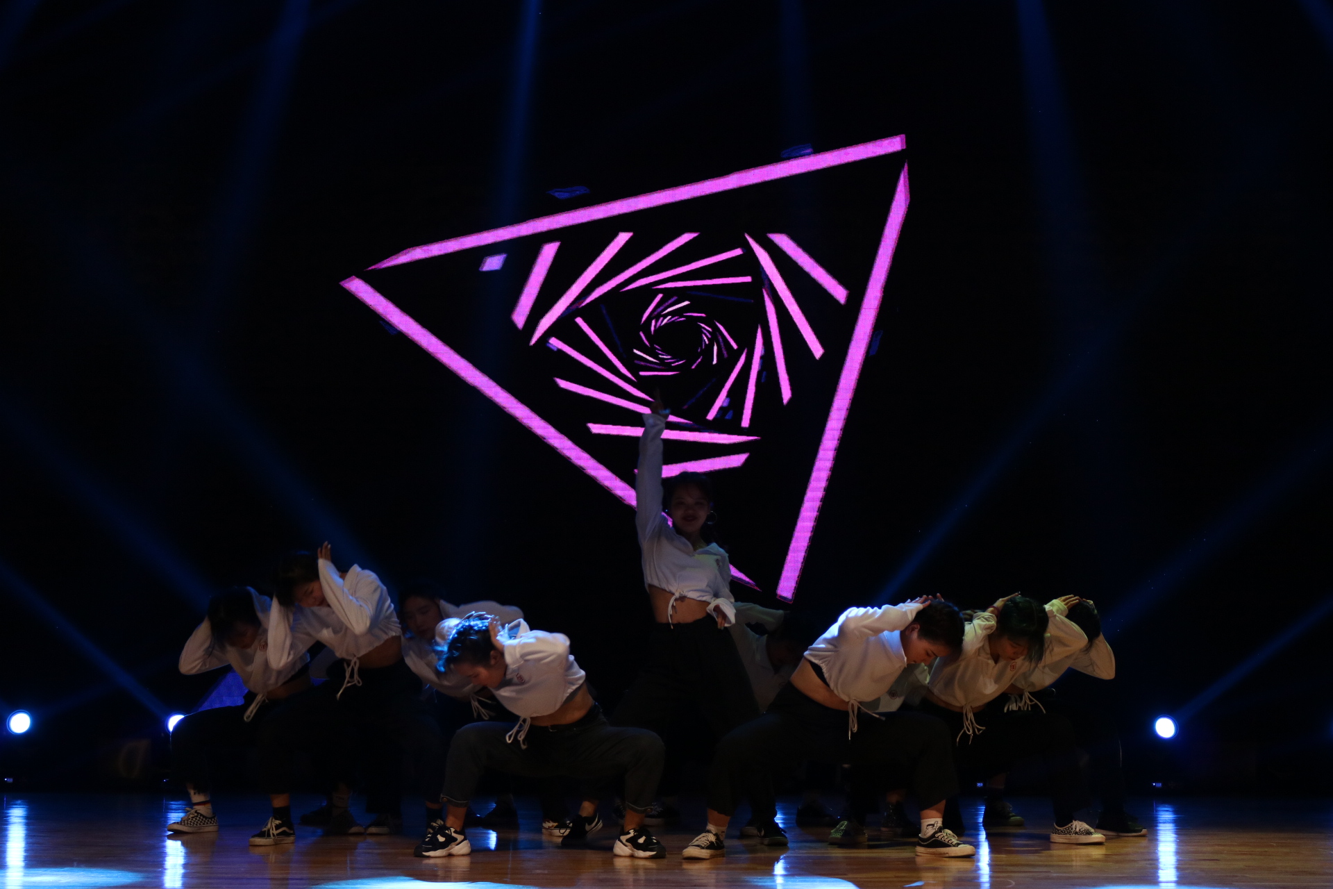 街舞协会流畅的舞步伴以重鼓与电音以及多种乐器交杂的舞曲,给人一种极富有冲击力的视觉震撼。完美展示了这个年纪该有的青春活力,娴熟而欢愉的舞台,相互之间的配合以及她们与音乐完美的融合,牵动着每一颗观众的心。