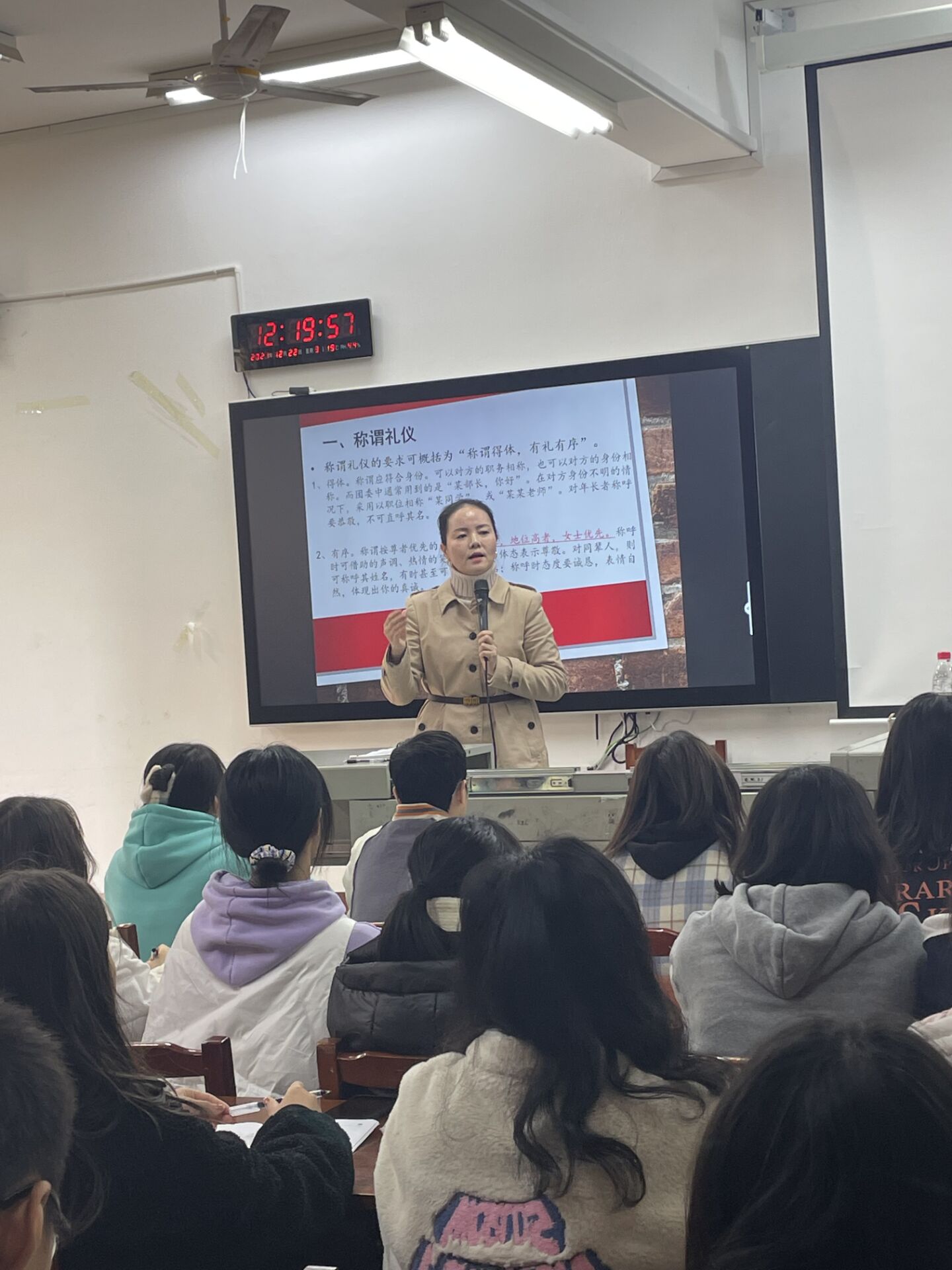 为提升大学生综合素养,帮助大学生更好地知礼、学礼、懂礼、用礼?;峒蒲г河?2月22日12:20在二教301举行团学分会第四次干部培训。本次培训由ACI高级礼仪培训师、会计学院学工一支部组织委员刘南云担任主讲,以“大学生干部社交礼仪”为题,涉及称谓礼仪、介绍礼仪、握手礼仪、名片礼仪、交谈礼仪等基本社交礼仪内容?;峒蒲г和叛Х只崛宄稍辈渭优嘌怠?