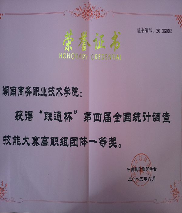 6.刘蓉娜老师指导荣获2013年全国统计市场调查分析技能大赛团体一等奖。