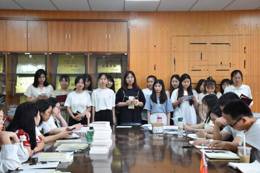 6月11日中午,旅游管理学院学工党支部在办公楼201召开了2021年度讨论预备党员转正支部大会?;嵋橛裳Чさ持Р渴榧切唤嗤局鞒?。大会讨论了预备党员田茜茜等18位同志的转正问题。