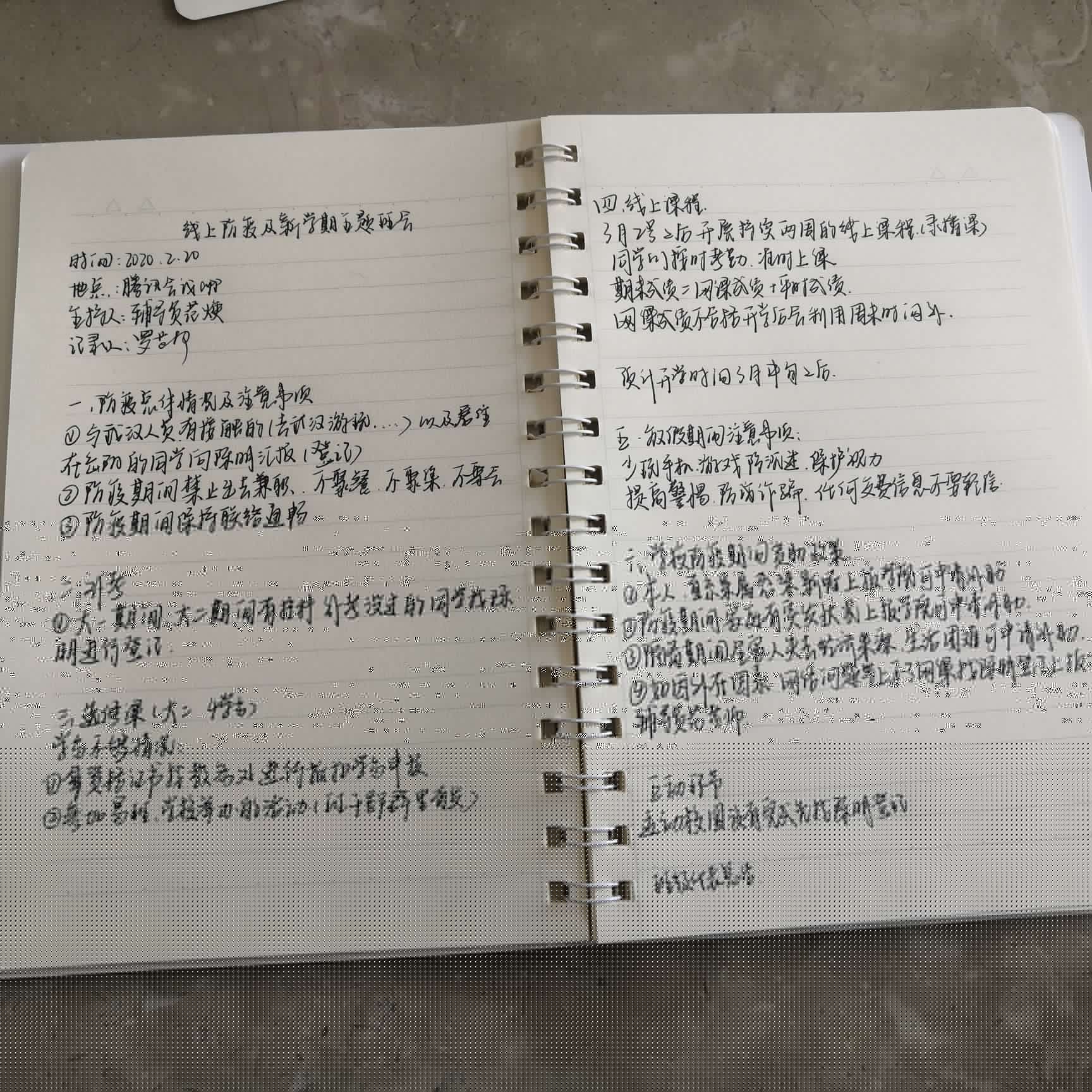 2月16日至20日全体专兼职辅导员利用腾讯会议平台在所带班级召开线上防疫主题班会?;嵘?,老师们传达了学院会议精神以及学校关于新冠肺炎疫情防控工作相关文件的重要内容,并代表学院向在疫情地区的同学表达最真切的问候?;嵋橹饕迫矫嬲箍阂皇窃谝咔槊媲埃】岛托奶谠诘谝晃?,多为父母分忧,少打游戏多锻炼。二是??尾煌Q?,全体同学务必按时按质量地完成线上课程,禁止刷课代课。学院在前期已对学生个人线上学习条件进行调查,对“上课困难”的同学也会重点帮扶。三是对于“因疫致贫”的同学,不仅有国家政策的扶持,学校也会大力帮助?;岷?,老师们也就疫情防控期间同学们最关切的问题做了耐心解答。