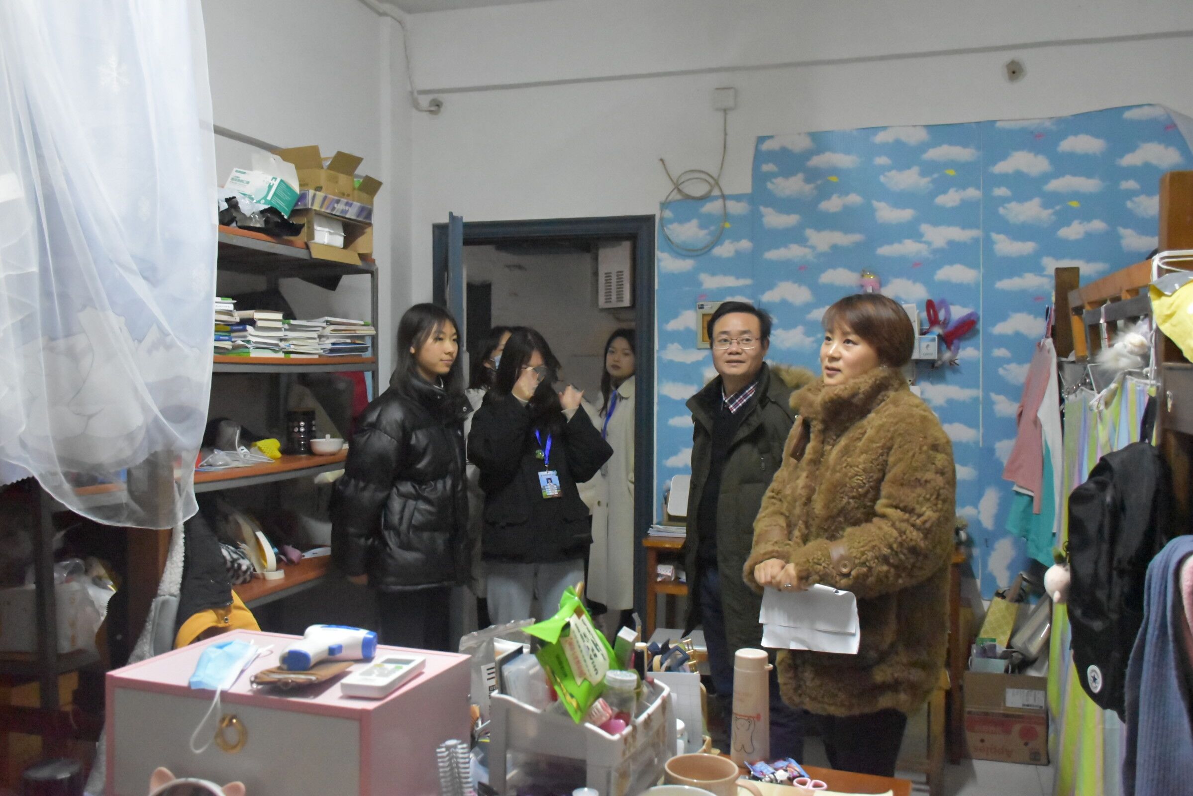 欧阳书记带领辅导员们先后走访了1栋、3栋、5栋、6栋、10栋、15栋的部分学生宿舍,对宿舍安全、卫生和文化建设等方面逐一进行了检查,叮嘱同学们提升安全意识,养成良好的学习、卫生和作息习惯。走访过程中,欧阳书记对5栋506、6栋406、10栋104等优秀寝室进行了表扬,他还再三强调:“插座、吹风机、充电器等电器需及时拔出;不能私自使用大功率电器;垃圾及时倒,房内保持透风透气;空调要及时关。”同时,通过此次走访,辅导员们也发现了一些寝室存在的问题,如1栋213寝室私自使用煮锅,15栋702寝室未及时拔出插座。