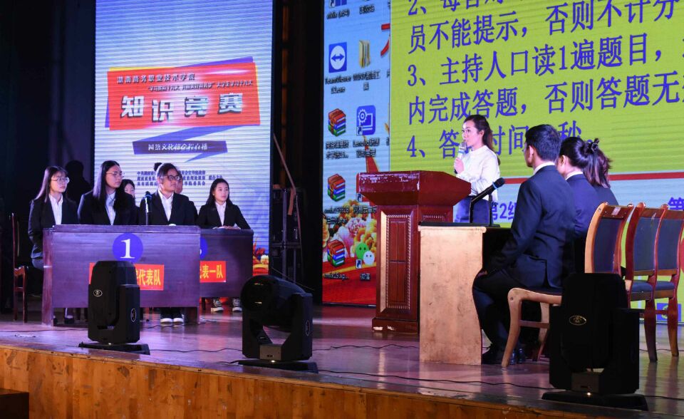2017年12月26日晚7:00,人文旅游学院第一代表队于体育馆参加了湖南商务职业技术学院举行的十九大知识竞赛决赛。这次竞赛旨在增加大学生对十九大相关知识的了解,培养大学生的哲学社会科学基础知识。