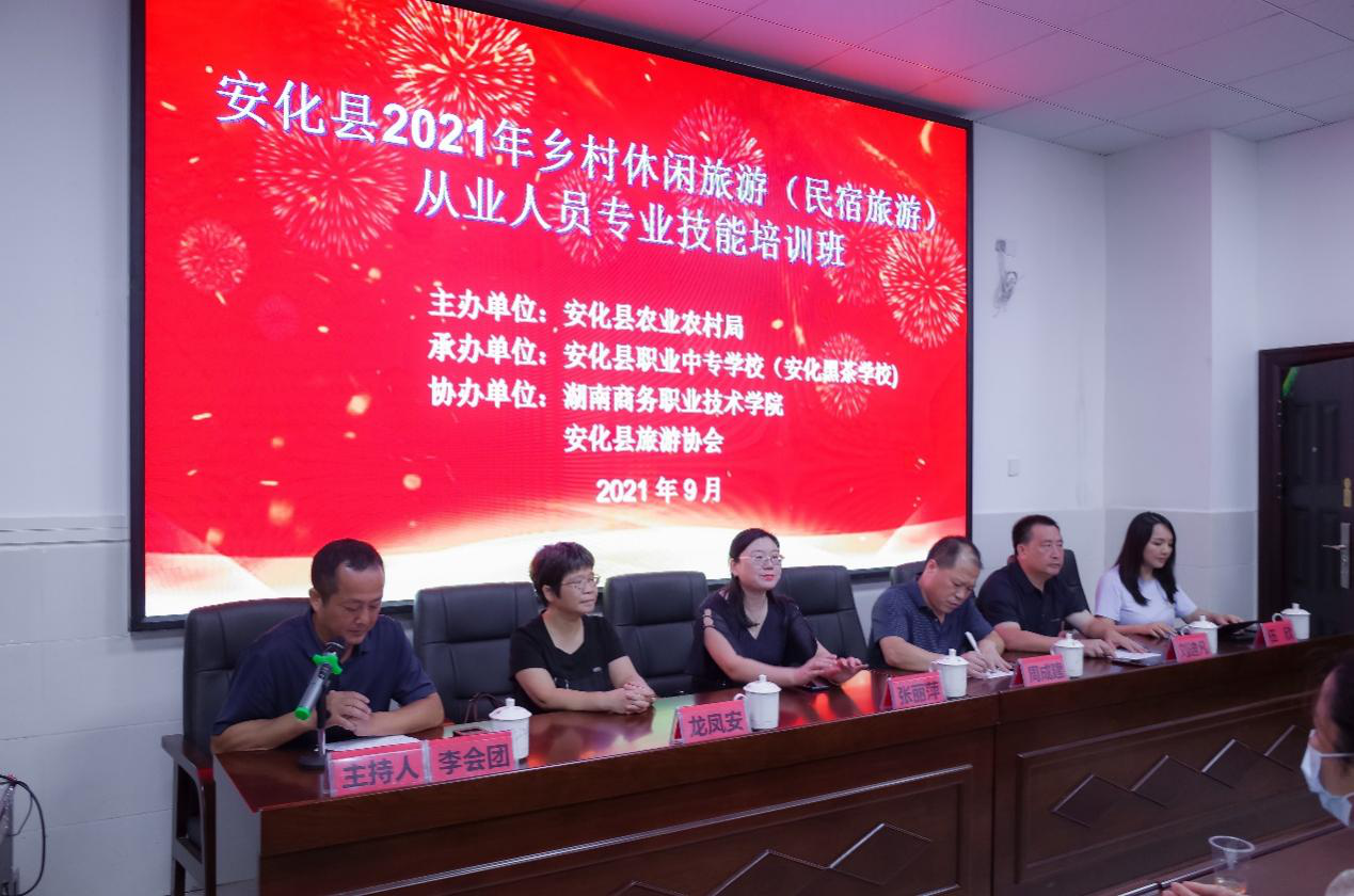 为贯彻国家和省委、省政府《关于实现巩固拓展脱贫攻坚成果同乡村振兴有效衔接的实施意见》等文件精神,加大休闲农业与乡村旅游从业人员培养力度,提高县域旅游行业从业人员基本素质。安化县农业农村局于2021年9月9日——15日组织举办乡村旅游(民宿旅游)从业人员专业技能培训,我校旅游管理学院协助开班授课,安化县域内从事民宿旅游、休闲农业的从业人员等50余人参加培训。