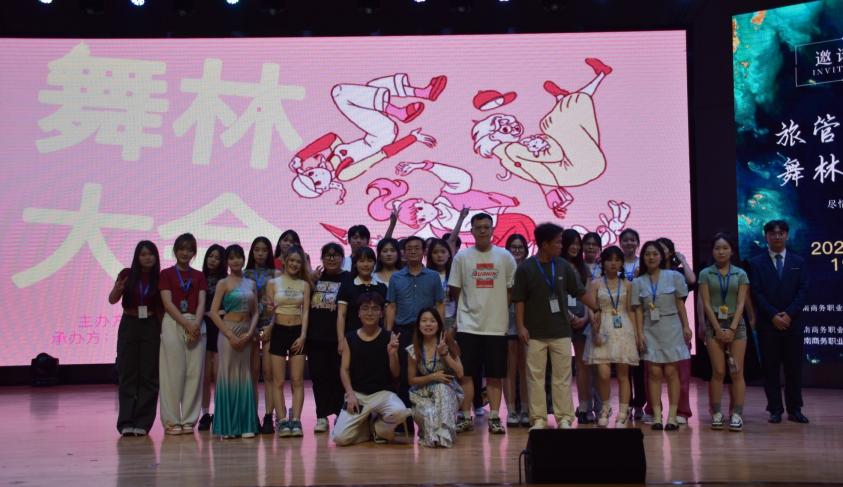 为丰富校园文化生活,进一步提高同学们欣赏美、鉴赏美的能力,加强大学生艺术素质教育,5月31日晚,旅游管理学院在体育馆举办了第五届“舞”林大会比赛决赛,出席此次活动的有党总支副书记欧阳序华、辅导员夏瑞霞、江文雯、刘雨童等。