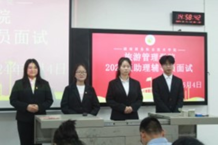 为进一步发展旅游管理学院助理辅导员队伍建设、培育优良学风、建设良好班集体,使旅游管理学院的精神得以传承。旅游管理学院于2024年6月4号下午14点在博学楼开展2024级助理辅导员面试选拔。作为面试官参与此次选拔的有辅导员马行厚、莫英、夏瑞霞、江雯文、刘雨童、王靖颖、厉泽;旅管学院团学分会主席团以及各部长。