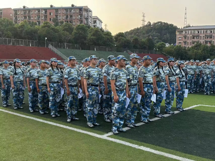 在炽热的阳光下,同学们身着迷彩服,站姿如松。随着教官铿锵有力的口令,他们整齐划一的执行着稍息、转向、齐步等指令。他们的动作迅速而准确,每一个动作都充满着力量和节奏感,展现了军人的敏捷和团队精神。红歌晚会上,新生们在教官的带领下,唱着一首首振奋人心的军歌,歌声响彻云霄,激发了同学们的爱国热情。