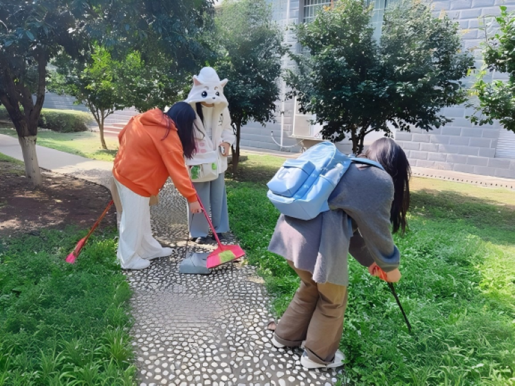为优化校园育人环境,增强学生环保意识与劳动观念,2025年11月5日中午,旅游管理学院劳卫部组织志愿者开展“绿色劳动践初心 青春聚力美校园”校园义务劳动。