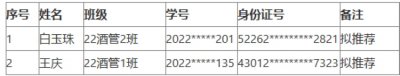 关于旅游管理学院2023-2024学年 国家奖学金第二批评选结果的公示
