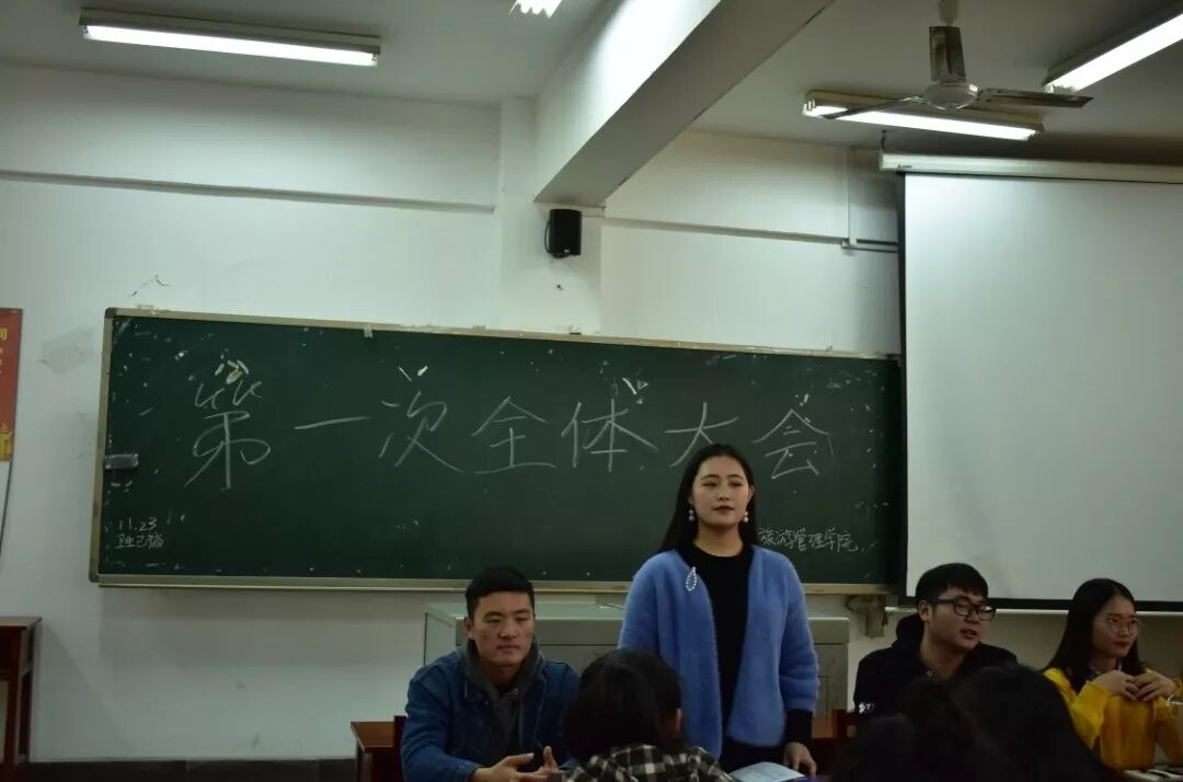 2018年11月26日,旅游管理学院第十四届团学分会在第二教学楼二楼开展了第一次全体大会。大会开始,首先由秘书部进行部门点到,然后由陈雅副书记宣布会议开始。
