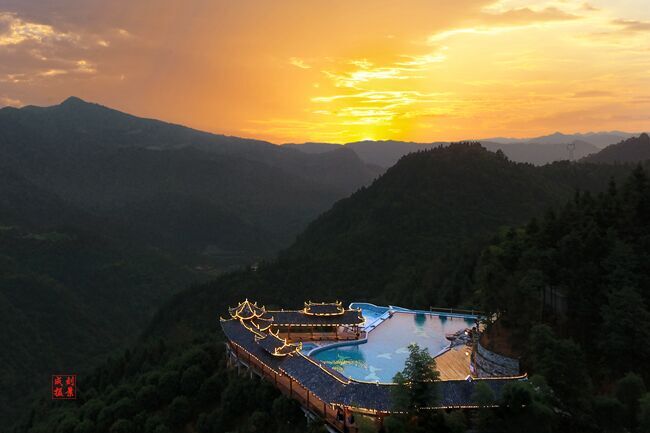 雪峰山枫香瑶寨占地面积20000平米,建筑面积4000平米,民俗活动广场750平米。枫香瑶寨一带巨枫成林,春夏莺歌燕舞,深秋霜叶如火,蔚为壮观。泳池建在古寨的右上角,池塘呈半圆形,池水来自响水洞,水质清甜甘爽,饮之可以延年益寿,浴之能够美肌健肤,冬暖夏凉,四季恒温。